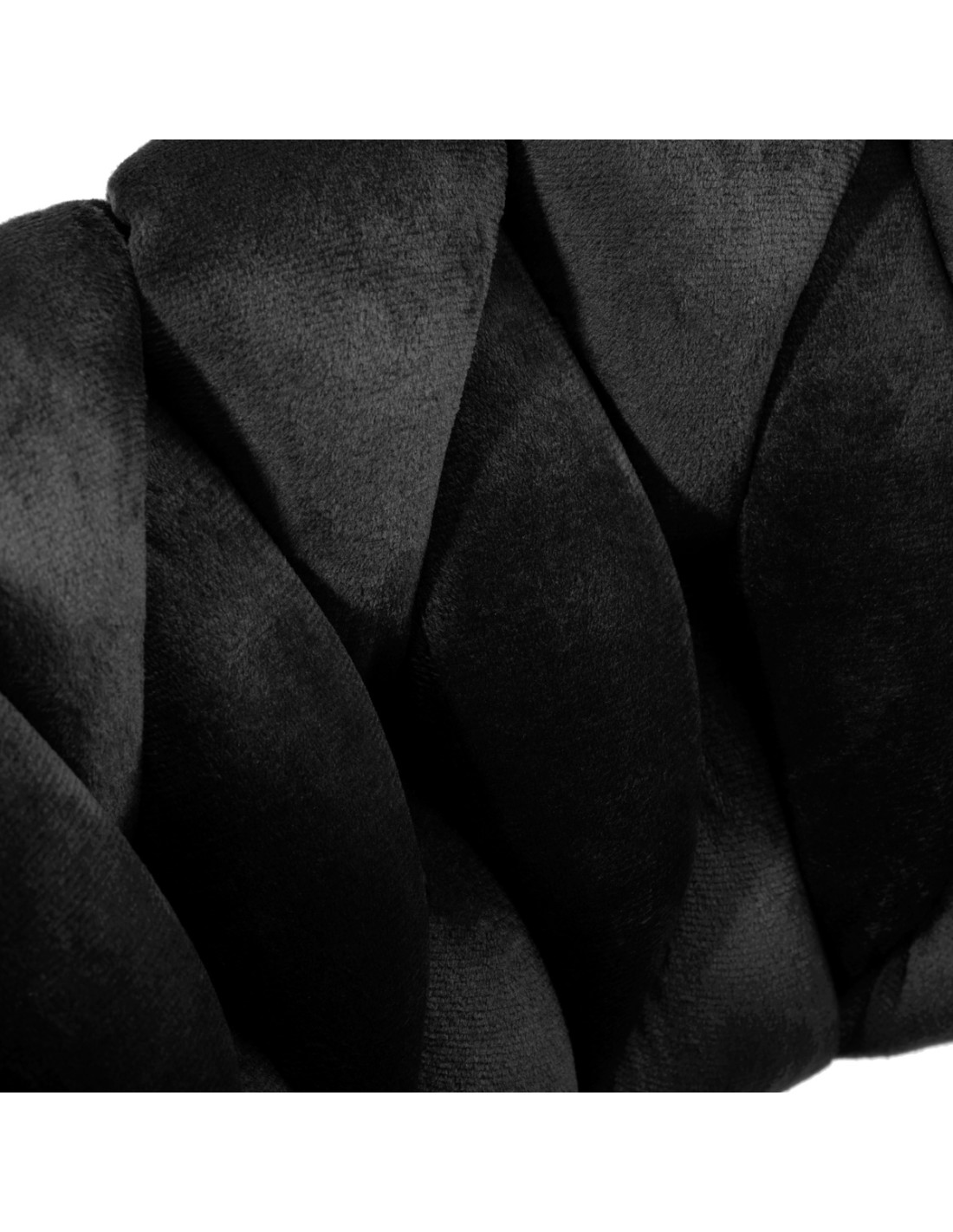 Pleasant-to-the-touch, velvet upholstery in shades of black gives the hocker a unique character, and the aesthetically intertwined fabric on the backrest emphasizes the unique look of the furniture. The finish makes the piece of furniture catch the eye. The frame in shades of gold adds elegance and prestige, perfectly matching the velvet.