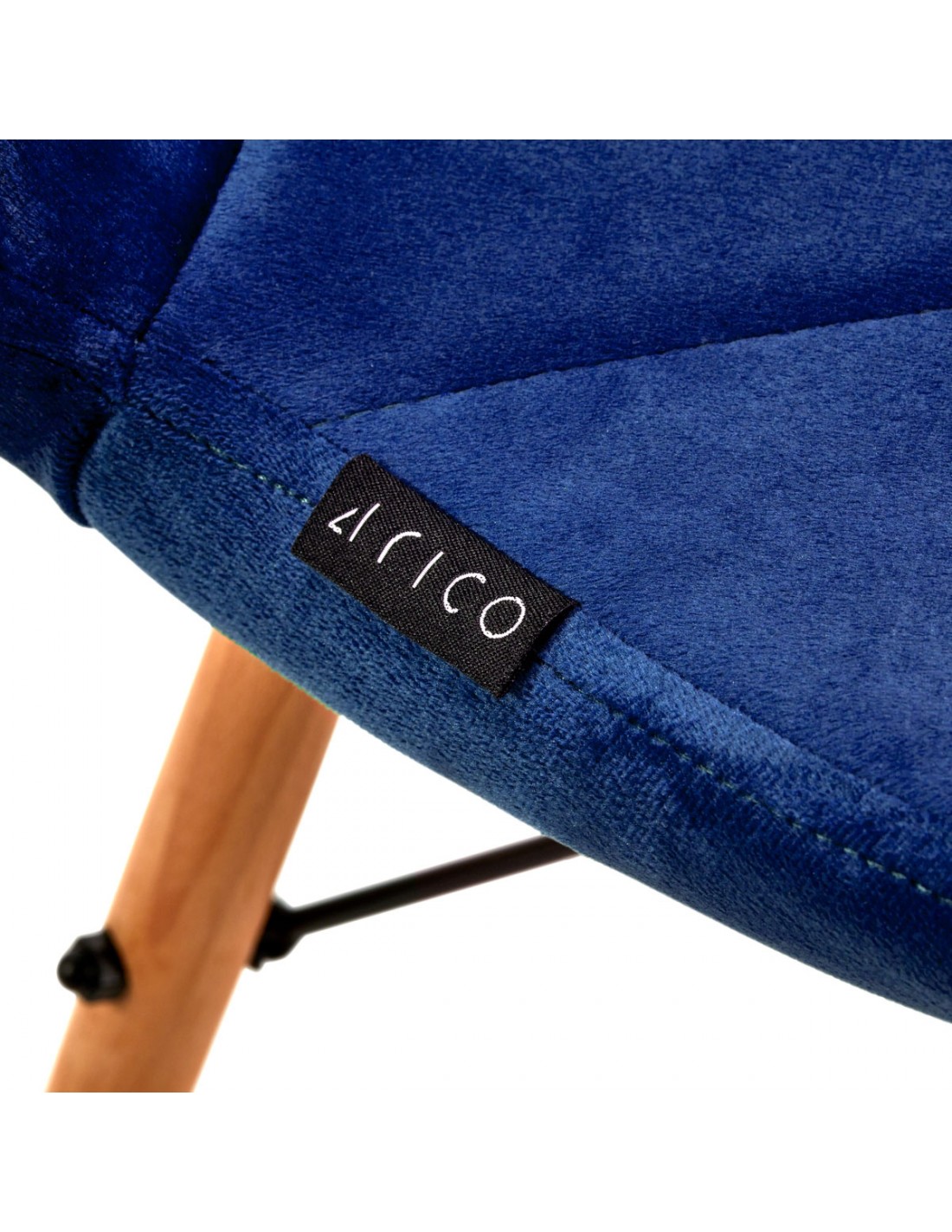 The seat is upholstered with pleasant-to-the-touch velvet in shades of navy. This gives it an exclusive look and ensures comfort of use. Careful stitching in geometric shapes is an elegant touch, and the metal frame in shades of black connecting the legs adds stability to the furniture. The matte-finished wooden legs are finished with plastic protections, additionally protecting against accidental damage. The chair in the Scandinavian style is a comfortable piece of furniture that will become a decoration of the reception area of any beauty salon.