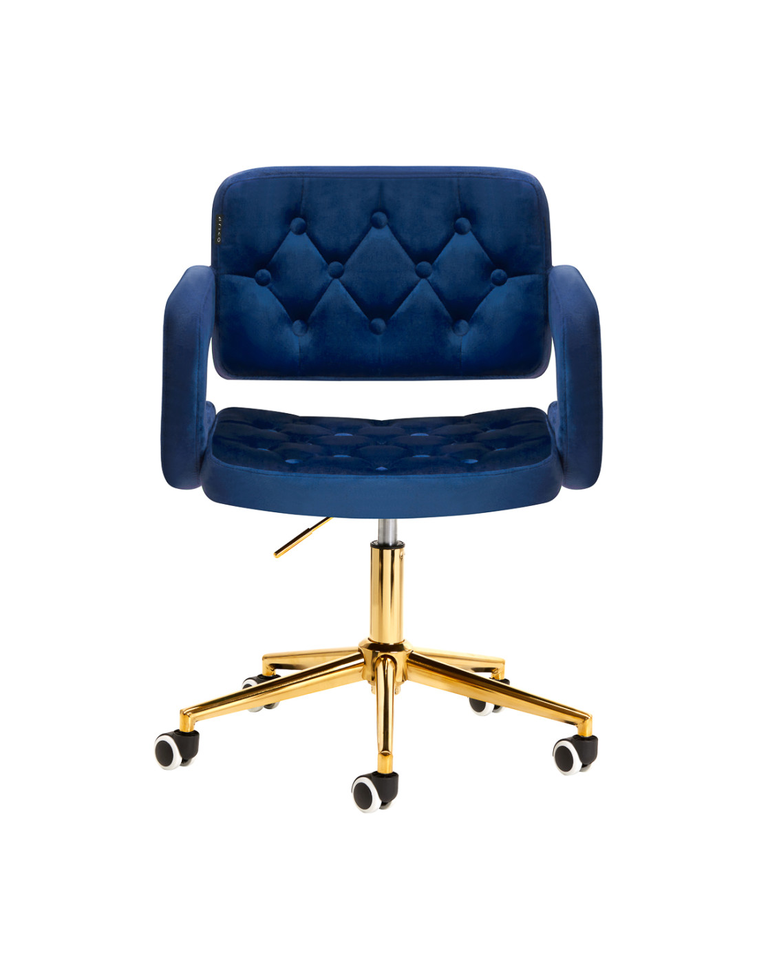 Pleasant to the touch, velvet upholstery in shades of navy blue gives the furniture a unique character. The finish makes the furniture eye-catching. The frame in shades of gold adds elegance, perfectly matching the velvet. Functional wheels ensure mobility, making it easier to move the chair and move around the salon while working. Aesthetics of workmanship, comfort of use, decorative quilting and ergonomically profiled backrest make the chair meet the requirements of even the most demanding users.