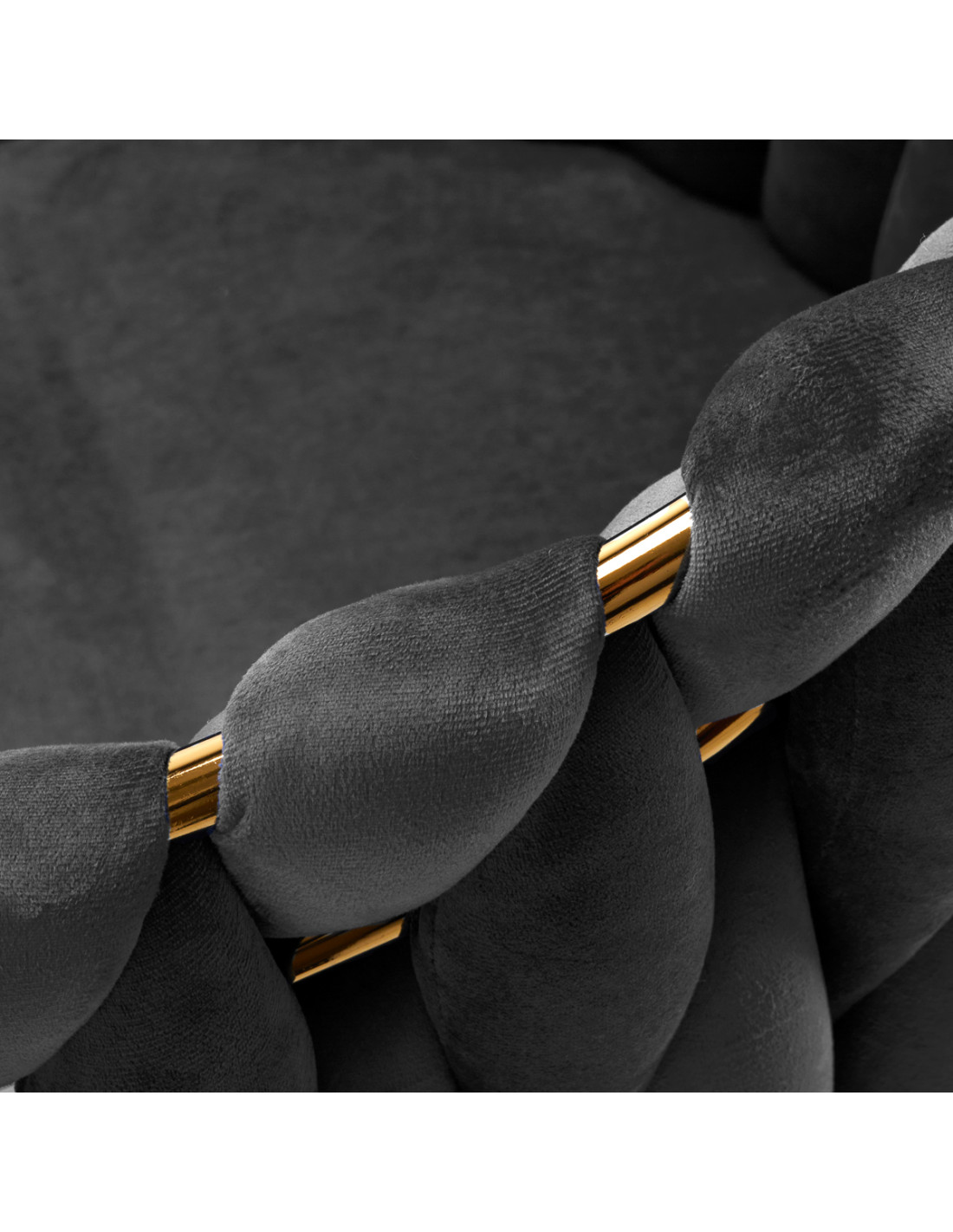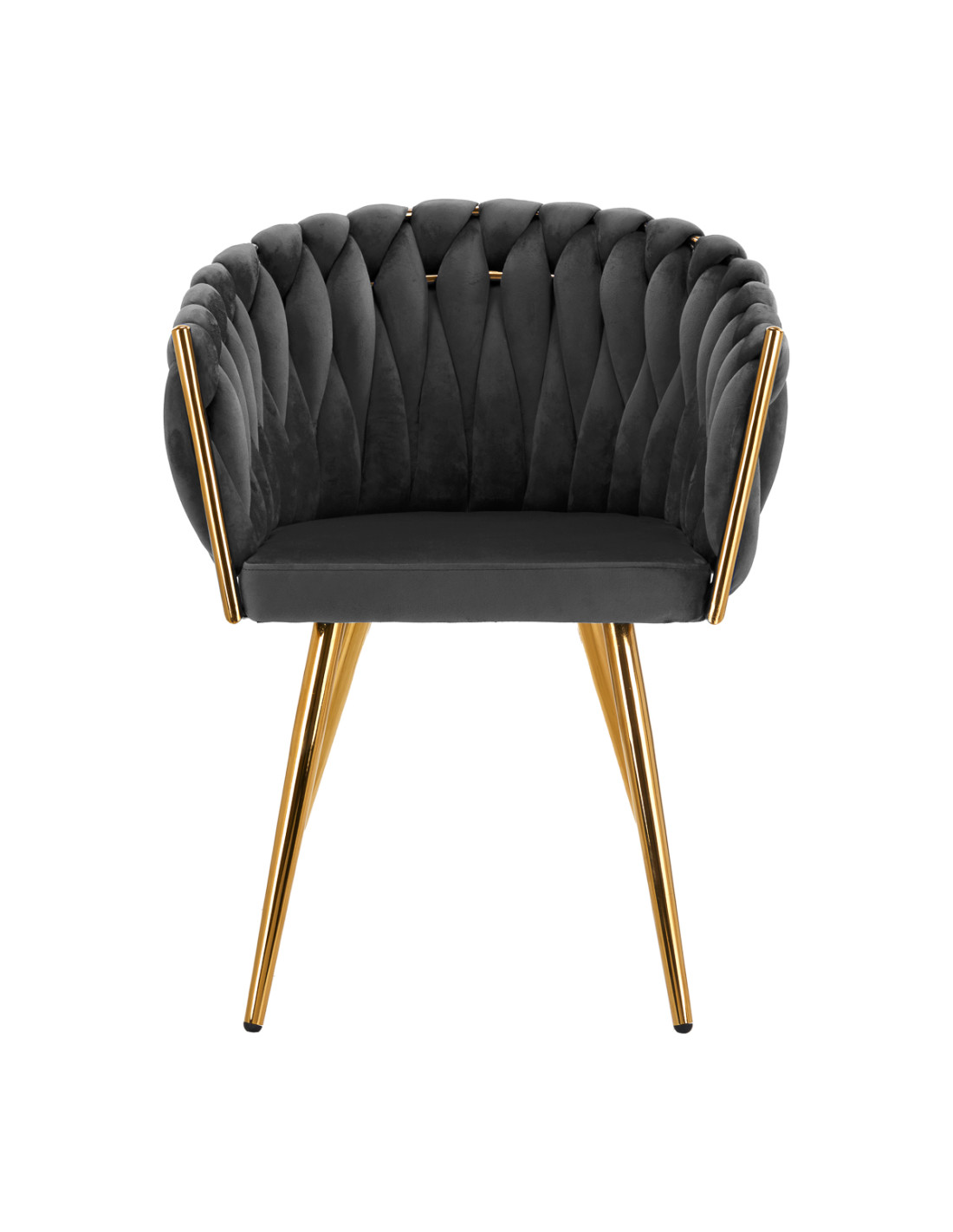 The pleasant-to-the-touch material, velvet upholstery in shades of gray gives the chair a unique character, and the aesthetically interwoven fabric on the backrest emphasizes the unique appearance of the furniture. This gives it an exclusive look and ensures comfort of use. The frame in shades of gold adds elegance and prestige, perfectly matching the velvet. The elegant 4Rico chair is an exceptionally comfortable piece of furniture that will decorate the reception area of any beauty salon.