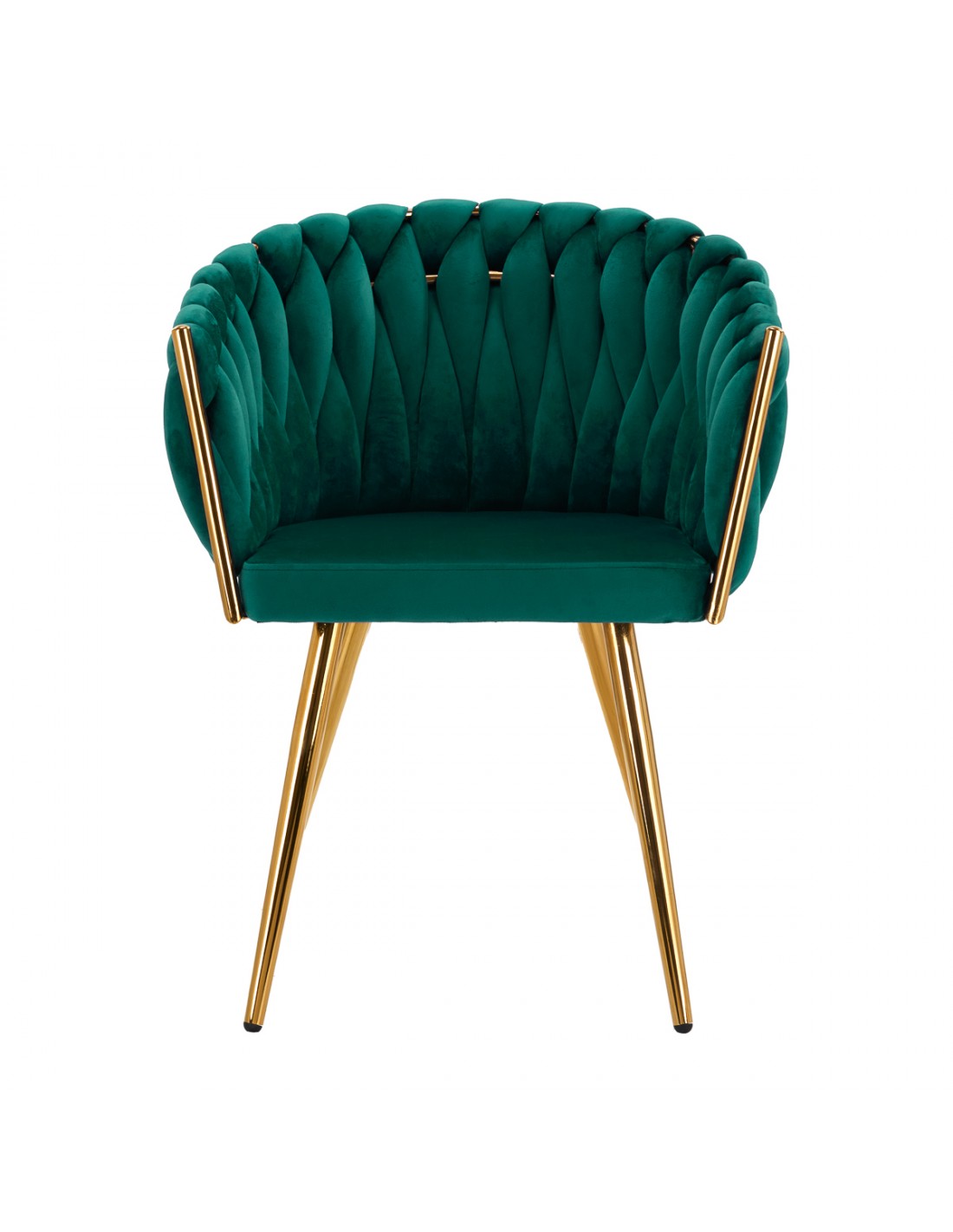 The pleasant-to-the-touch material, velvet upholstery in shades of green gives the chair a unique character, and the aesthetically interwoven fabric on the backrest emphasizes the unique appearance of the furniture. This gives it an exclusive look and ensures comfort of use. The frame in shades of gold adds elegance and prestige, perfectly matching the velvet. The elegant 4Rico chair is an exceptionally comfortable piece of furniture that will decorate the reception area of any beauty salon.