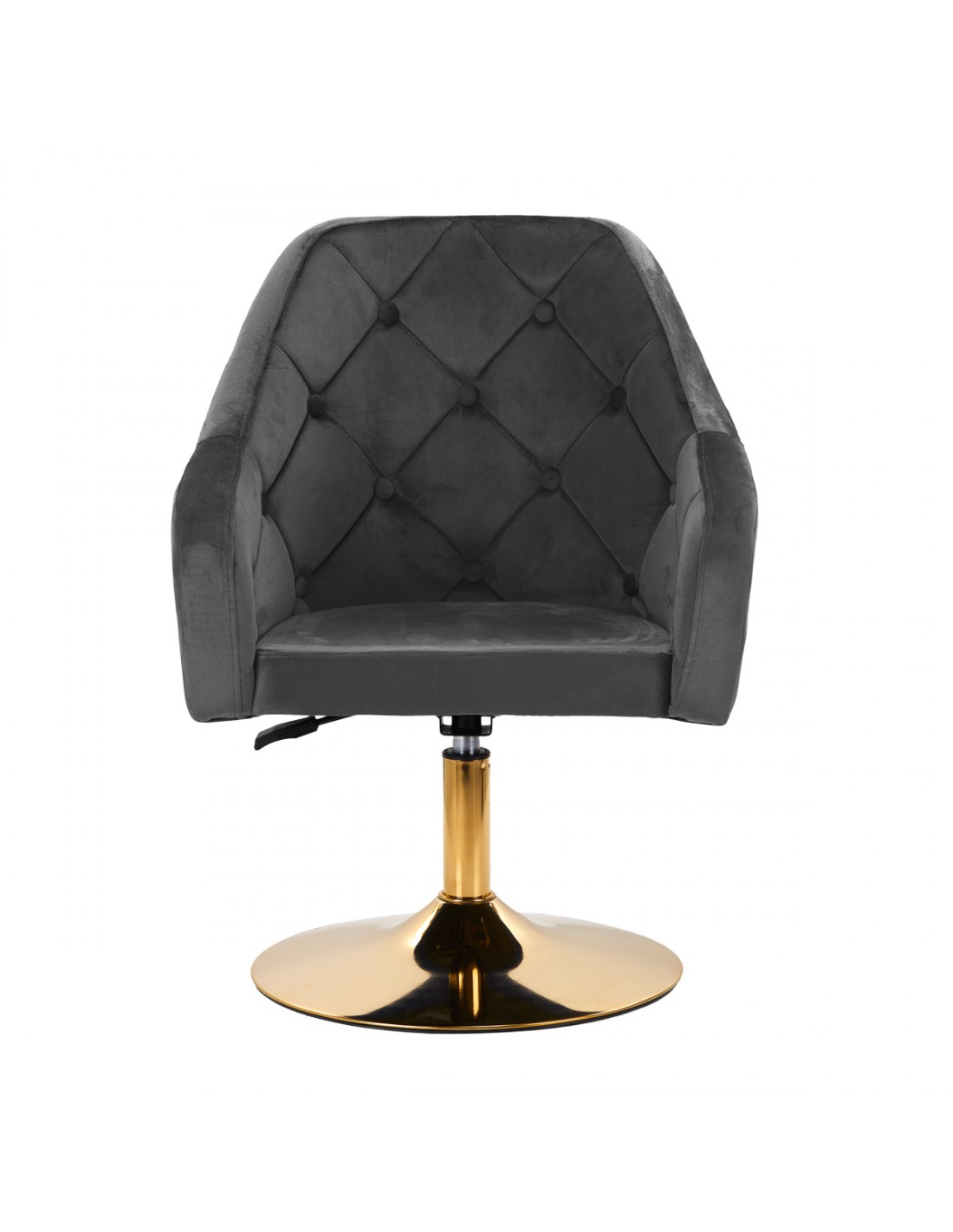 The interesting design gives the chair a unique character. The pleasant-to-the-touch, velvet upholstery in shades of gray and decorative quilting make it a decoration of any interior. A stable, round base in shades of gold adds elegance, perfectly matching the velvet. Aesthetics of workmanship, comfortably placed armrests, ergonomically profiled backrest and aesthetic quilting make the chair meet the requirements of even the most demanding users.
