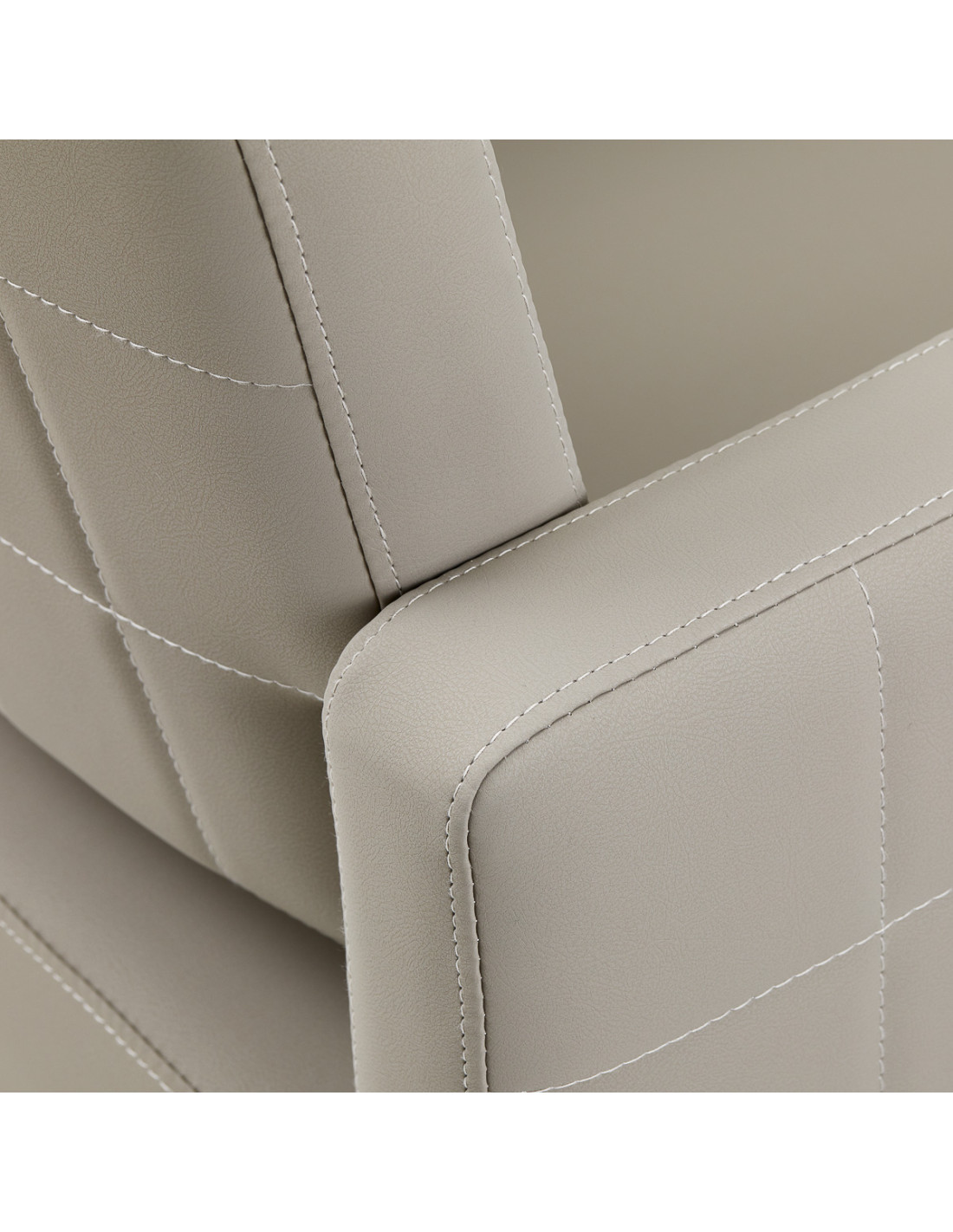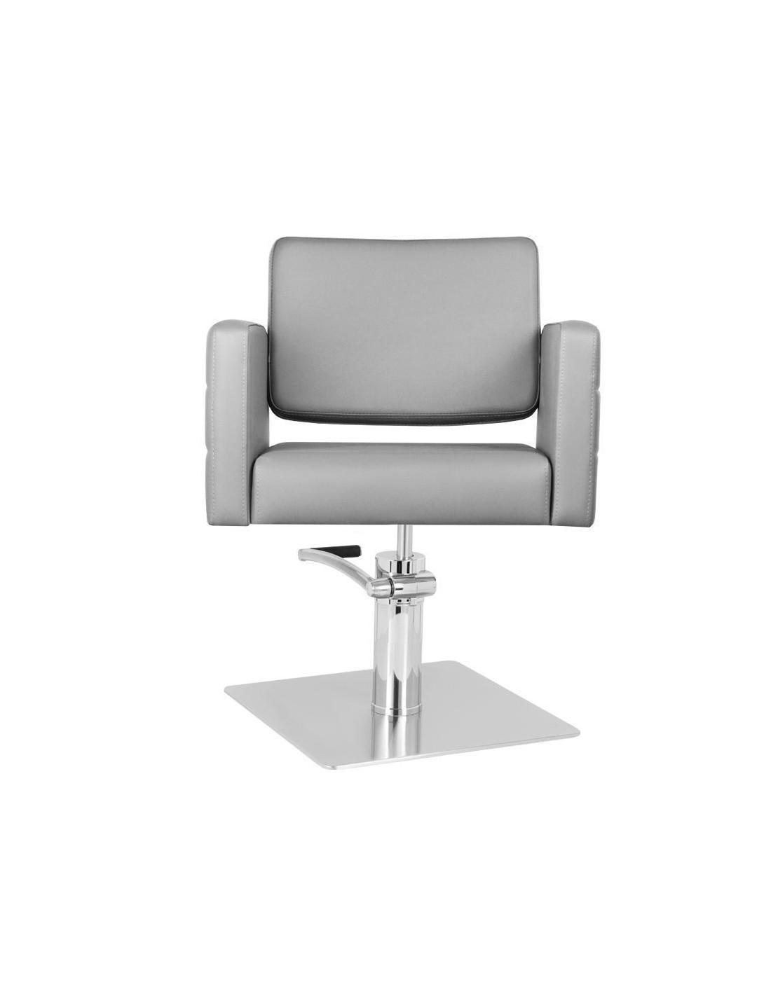 The comfortable armchair is filled with durable and deformation-resistant foam, which ensures long-term use, high comfort and convenience even during many hours of treatments. The upholstery is made of pleasant-to-touch synthetic leather, and the use of such material makes the equipment resistant to moisture, durable and very easy to clean. Cover in shades of gray along with visually interesting elements give it a unique character. The equipment is distinguished by an elegant design, which makes the chair look great in many hairdressing salon interiors.