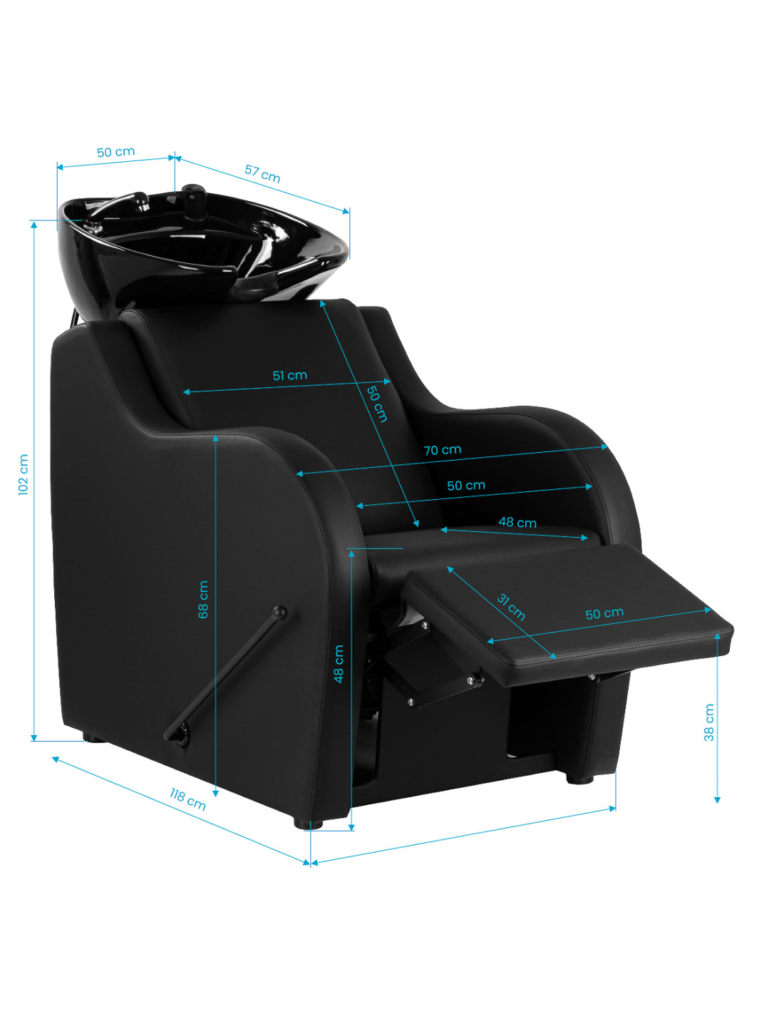 A black ceramic bowl of appropriate depth effectively minimises splashing of water and preparations used during treatments. The adjustable angle of inclination makes it easy to adjust its positioning to individual needs, which translates into comfort and efficiency of work. The high-quality material ensures durability, resistance to scratches and discolouration, and also makes it easier to keep clean. The appropriately profiled collar provides optimal support and comfort during Salon washbasin, while the comfortable plastic cover in shades of black ensures that the client will feel any discomfort associated with the cold ceramic surface.
