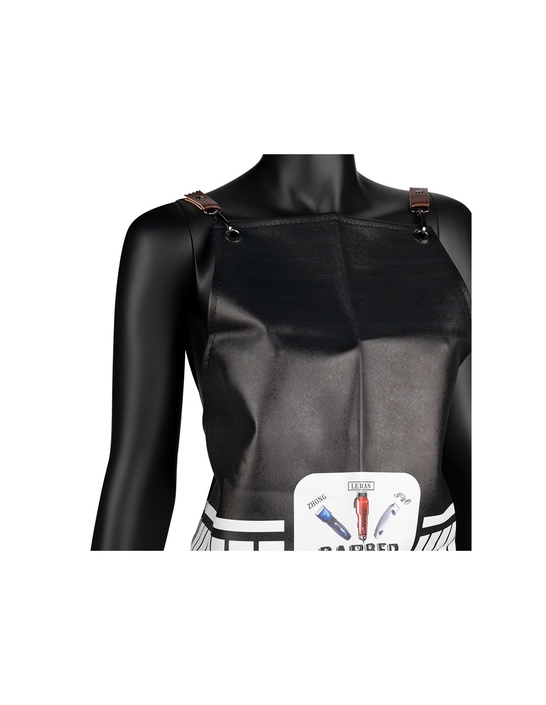 leather-like barber's apron not only looks great, it is also of high quality. one size fits all, thanks to a unique design with adjustable straps that can be removed for easier cleaning.