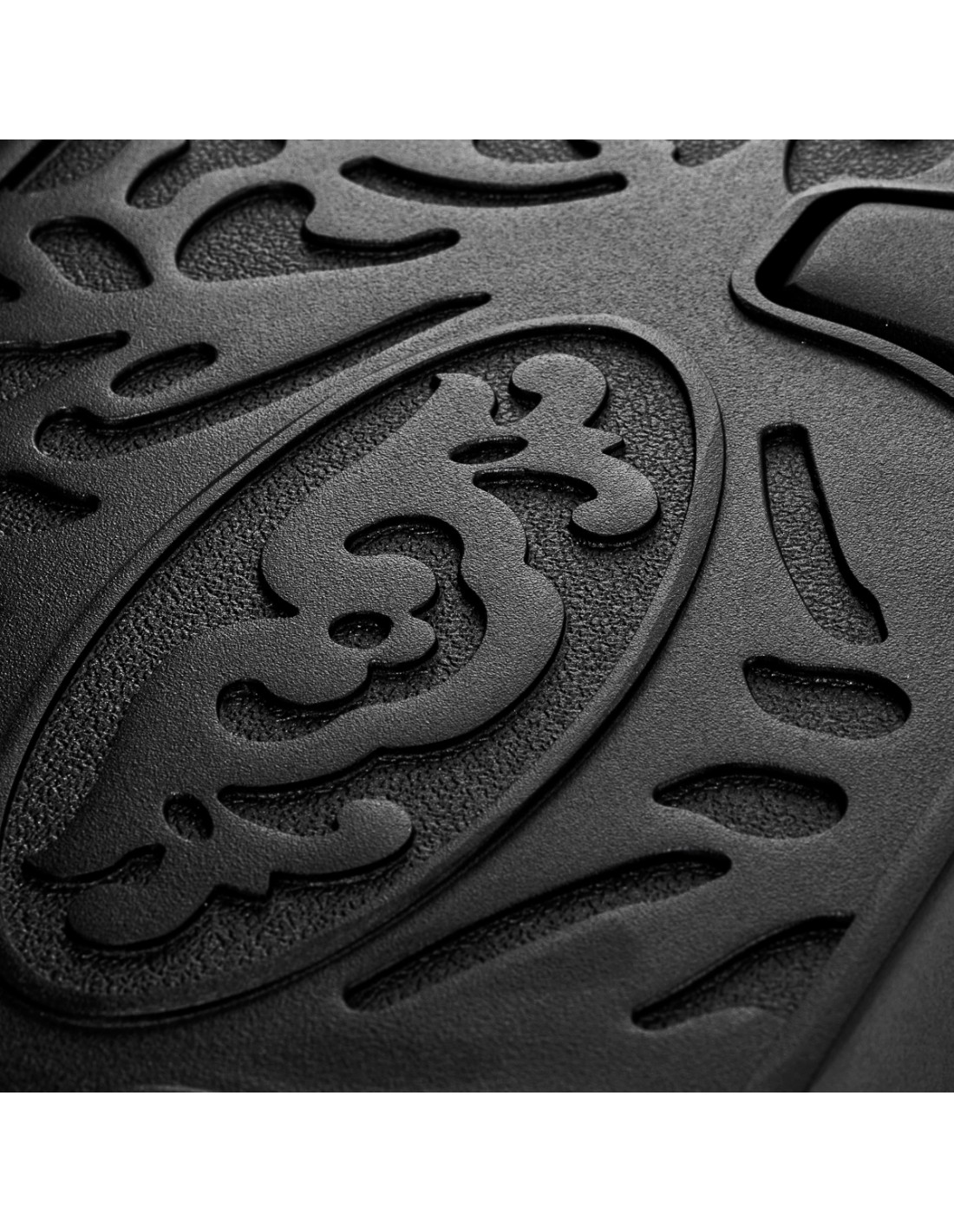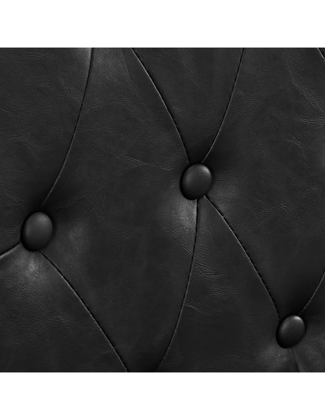 The solid construction of the base ensures stability and high comfort of use. The seat filling is made of durable, deformation-resistant foam and the upholstery is made of pleasant-to-touch synthetic leather with a semi-matte finish, ensuring the durability of the furniture and its comfortable use for a long time. They also make the equipment resistant to moisture, durable and easy to clean. The covering in shades of black with quilting and decorative buttons gives it a unique character. The chair with a characteristic design, referring to the vintage style, perfectly fits the atmosphere of barbershops, emphasizing their unique atmosphere.