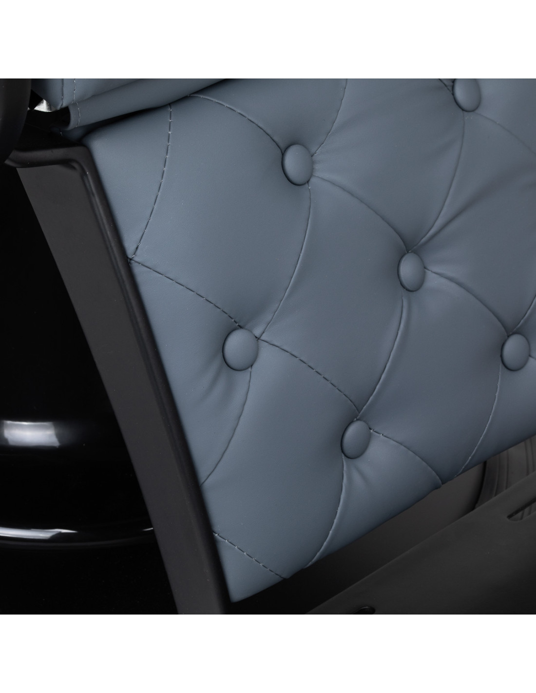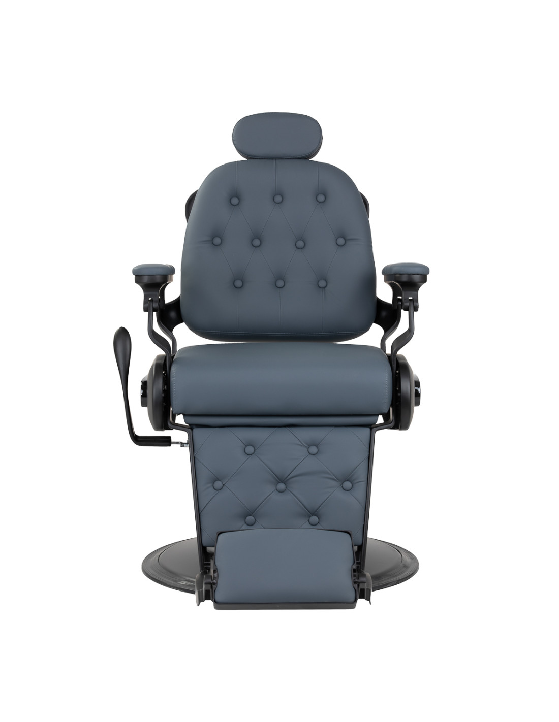 The stable construction of the base with elements in shades of black ensures high comfort of use. Filling with durable, deformation-resistant foam and upholstery made of pleasant-to-touch synthetic leather ensure the durability of the furniture and its comfortable use for a long time. They also make the equipment resistant to moisture, durable and easy to clean. The covering in shades of graphite along with original quilting and decorative buttons give it a unique character. Designer decorative elements inspired by motorcycles, referring to the vintage style, will perfectly fit the atmosphere of barbershops, creating their amazing aura.