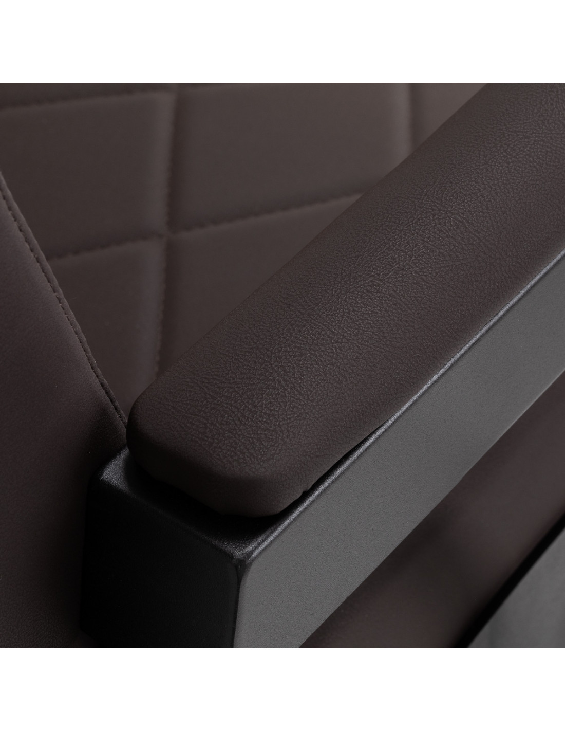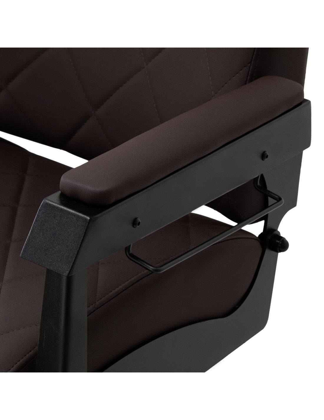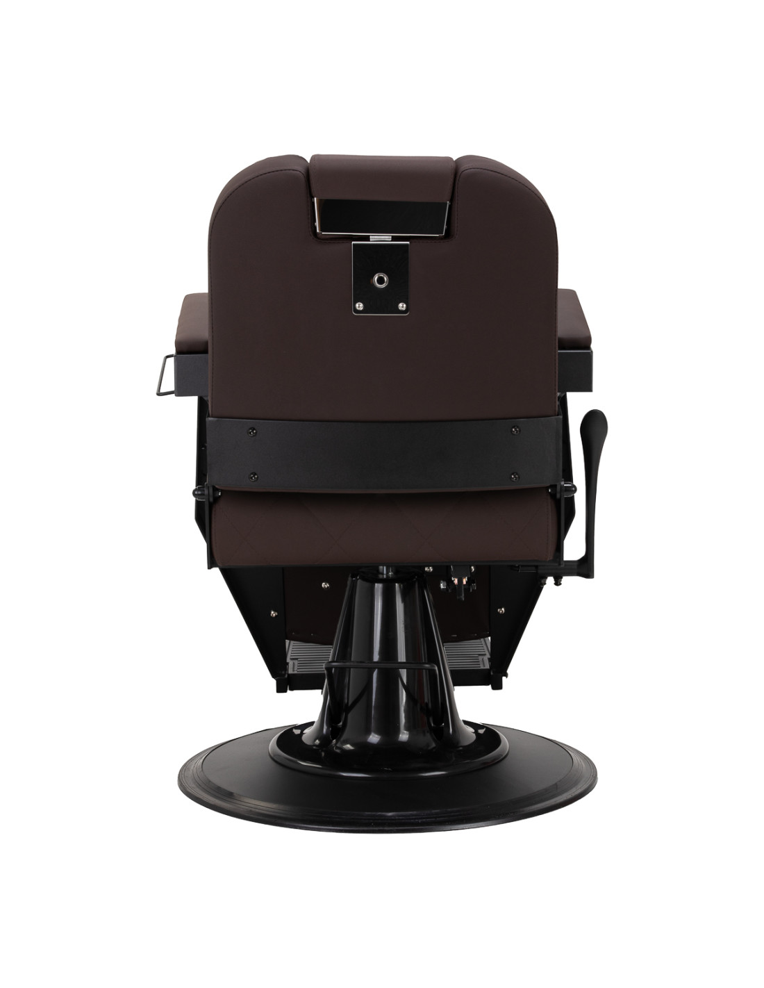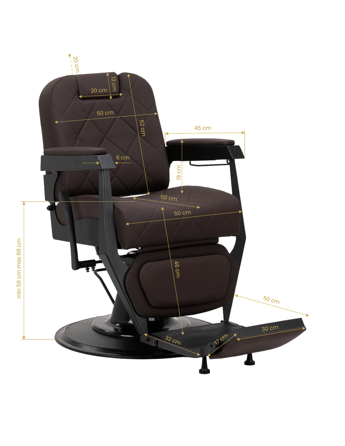 The stable construction ensures safety and long-lasting durability. The seat, filled with deformation-resistant foam, and upholstery made of soft, synthetic leather ensure durability and comfort. The moisture-resistant materials are not only durable but also easy to clean. The brown upholstery combined with a black frame gives the chair a modern and professional look, while its minimalist style allows it to fit into the décor of any barbershop.