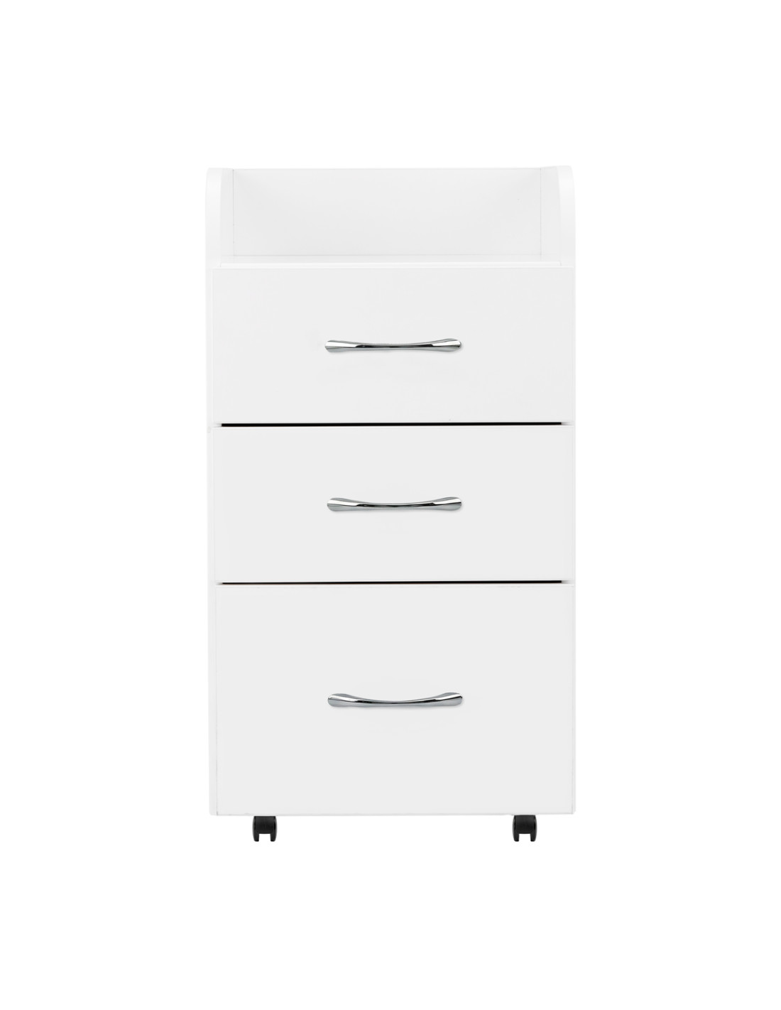 Three drawers of various sizes allow for convenient organisation of accessories, tools and cosmetic products. The mobility of the furniture is ensured by practical castors, including two with brakes, which facilitate moving the cabinet and allow it to be placed stably in the desired location. The design, created with podiatry clinics in mind, includes a dedicated space for a podiatry drill with an absorber, which promotes ergonomic organisation of the workstation and increases the comfort of performing treatments.