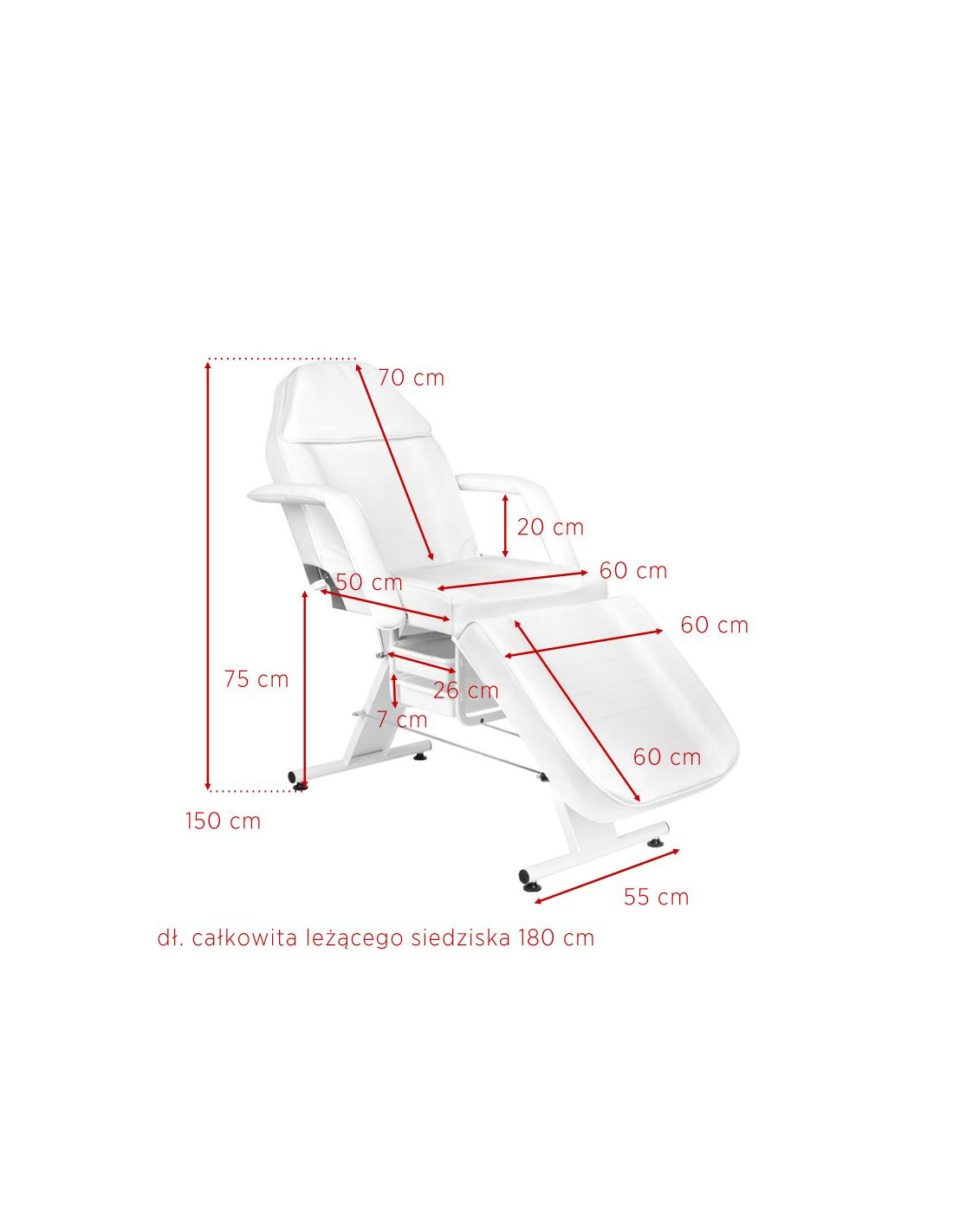 A special mechanism ensures gradual adjustment of the footrest and backrest angles. Using the lever, you can freely adjust the seat position. This allows for optimal adjustment to individual needs, for proper and convenient performance of treatments and high comfort of use. The chair can be unfolded into a reclining position, which significantly increases its functionality. This allows you to freely perform various types of treatments, including cosmetics, physiotherapy and tattooing.