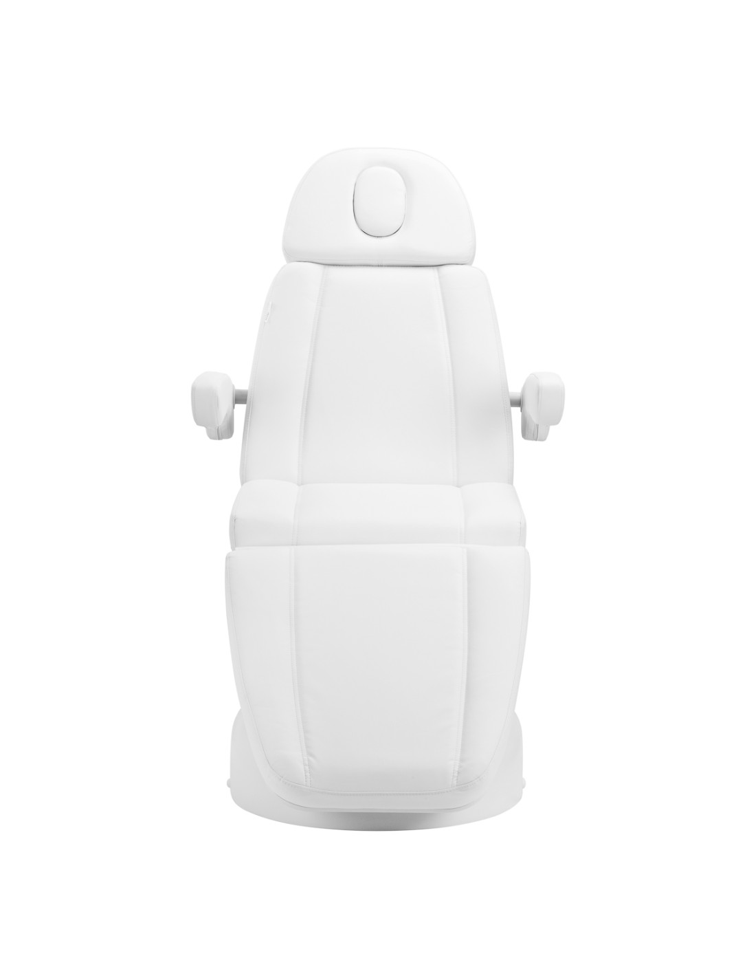 The robust construction of the chair ensures stability and durability during everyday use. The seat is filled with foam of appropriately selected hardness to guarantee comfort even during prolonged treatments. The pleasant-to-touch imitation leather upholstery in shades of white gives the chair a professional appearance, while being moisture-resistant and easy to clean. The durable base guarantees stability, while the carefully contoured hems emphasise the modern character of the furniture and enhance the ergonomics of the seat.