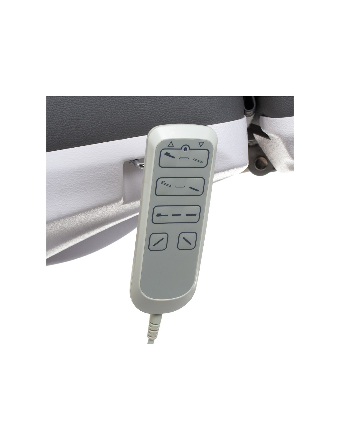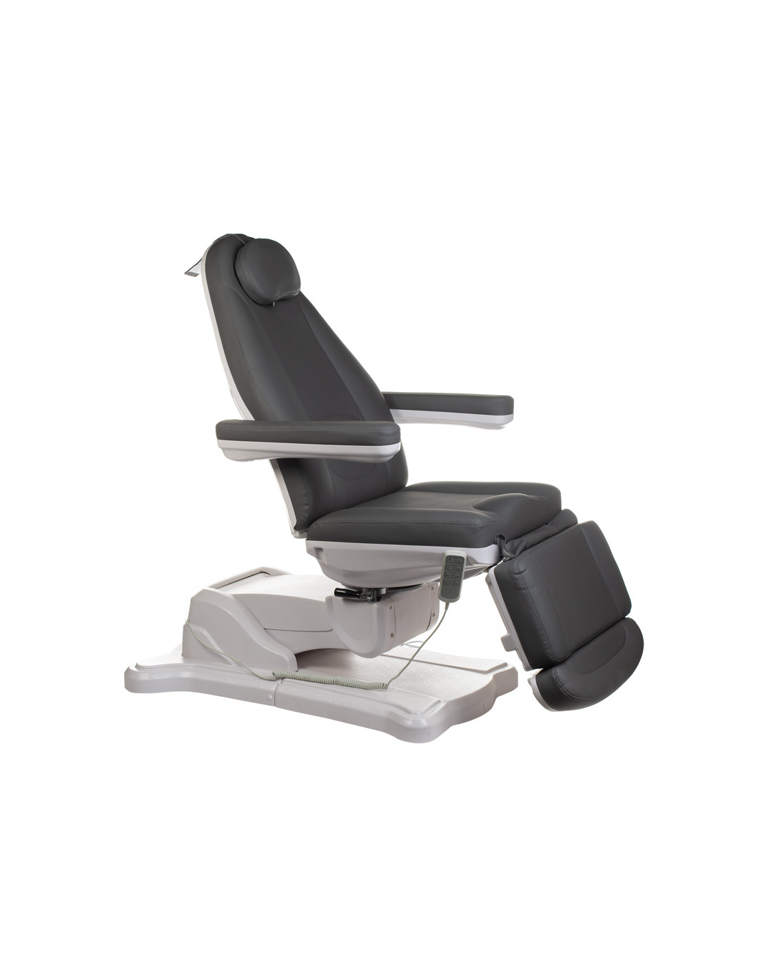 The Mazaro BR-6672B chair is equipped with three electric actuators, which allow for precise adjustment of the seat height, backrest tilt angle, and the so-called cradle position. The chair is controlled by a convenient remote control, allowing for quick and easy adjustment of the chair's position to suit the individual needs of the treatment. Additionally, the chair features a manually adjustable footrest and the ability to manually adjust rotation, which increases its functionality and versatility of use.