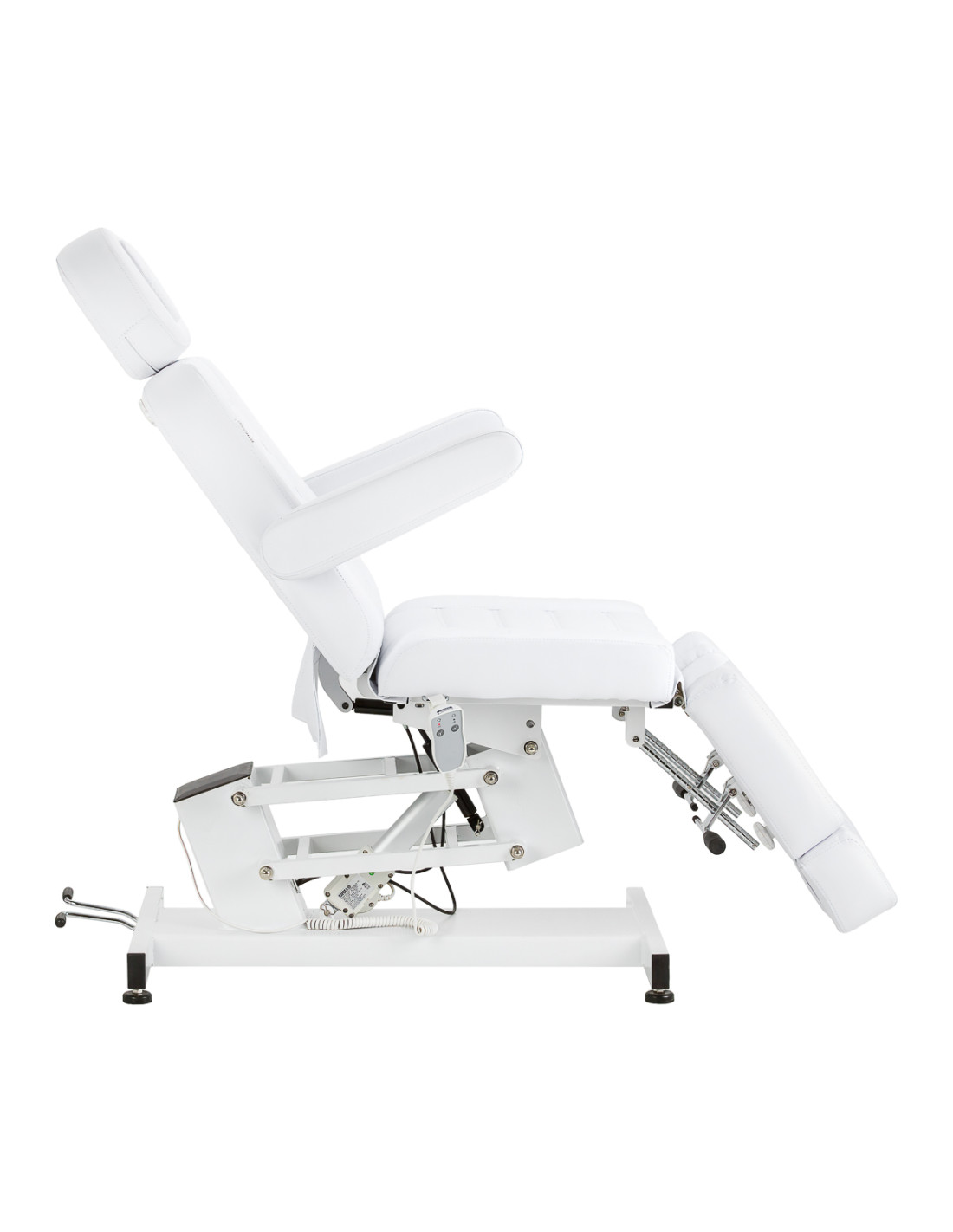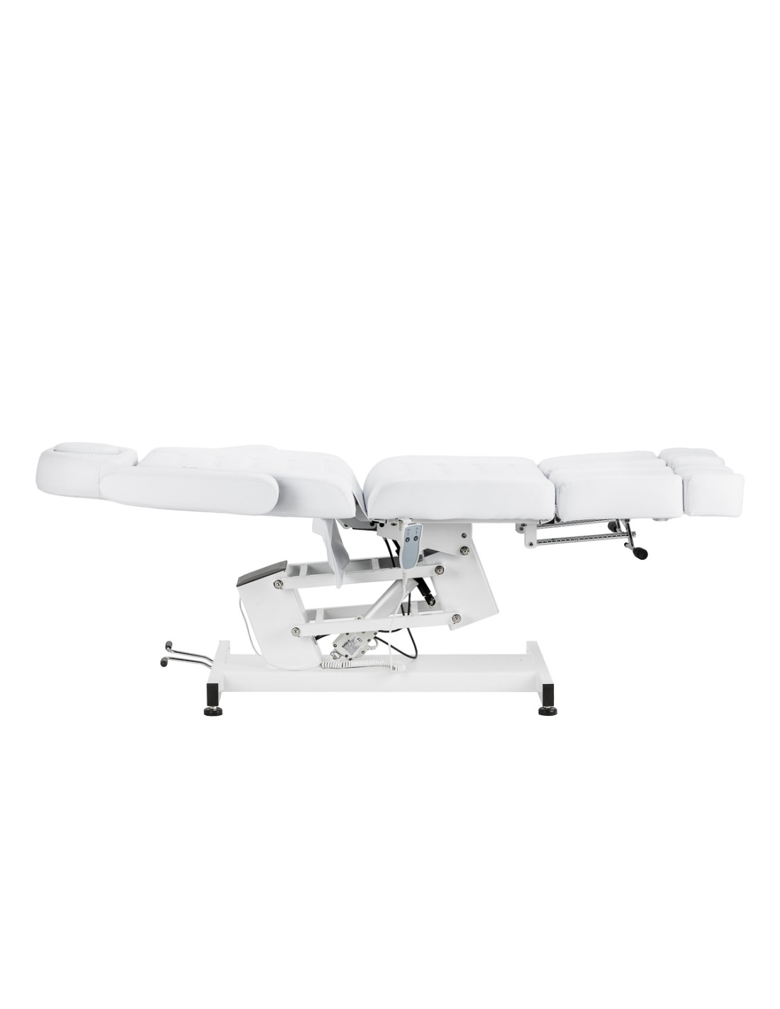 The Azzurro 706 Pedi electric beauty chair is a modern solution designed for podiatry specialists. The use of an electric actuator and manual adjustment of the split footrest and backrest, as well as the cradle function, ensure precise positioning of individual chair elements. The design is distinguished by its high stability and versatility, making it ideal for beauty and podiatry clinics. Intuitive operation and a wide range of adjustments allow the chair to be comfortably adjusted to the needs of both the client and the person performing the treatment.