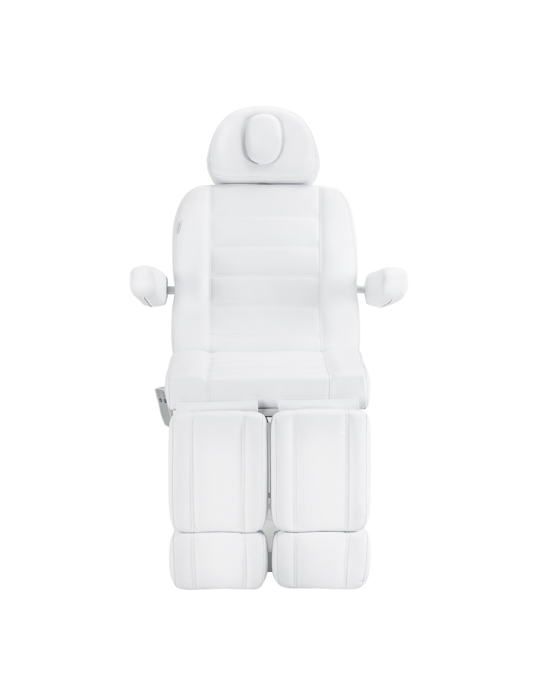 The wide seat ensures a high level of comfort even during longer treatments. Movable armrests with a lift function make it easier for the client to sit down in the chair and provide easy access for the person performing the treatment. The chair is equipped with a headrest that can be extended by 20 centimetres, which guarantees stable head support and additional comfort, especially for taller users. The opening in the headrest, hidden under a cover, increases comfort when lying down, especially during treatments performed on the back. Well-thought-out design solutions translate into customer comfort and ergonomic working conditions for the specialist.