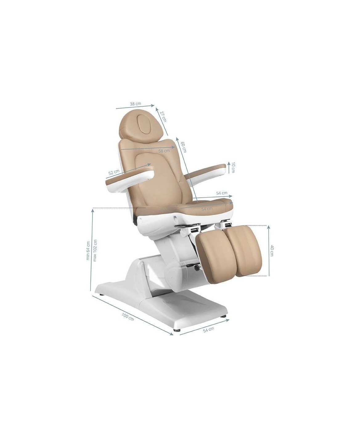 A modern, electrically adjustable cosmetic bed, ensuring comfort during the treatment not only for patients, but also for the persons performing the treatment.