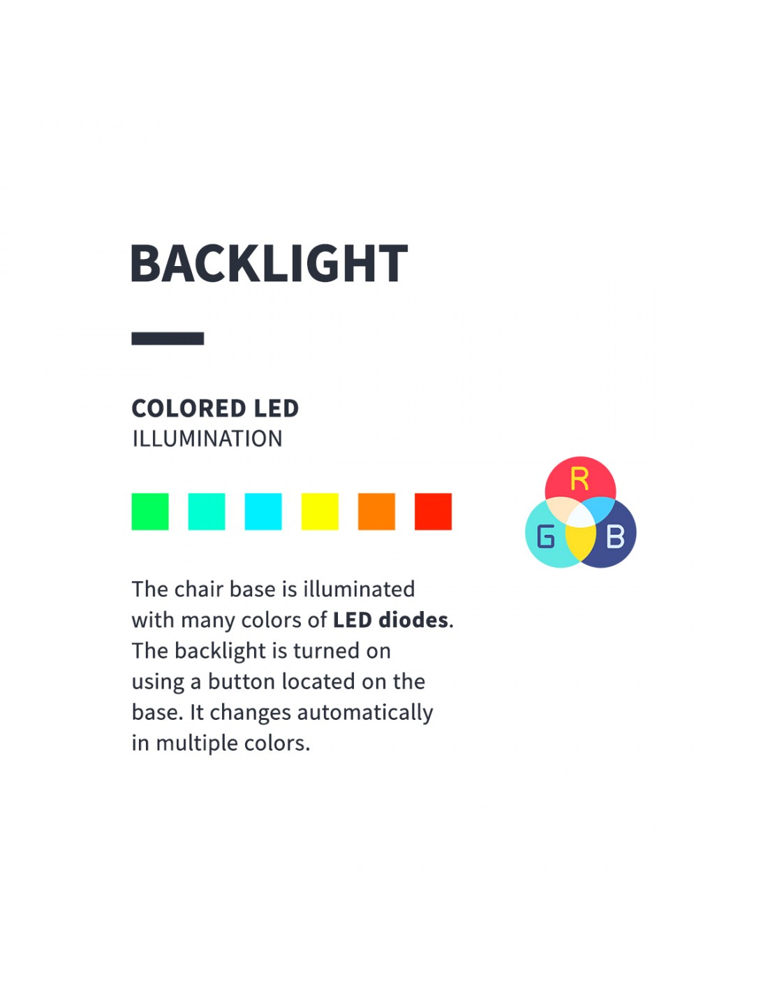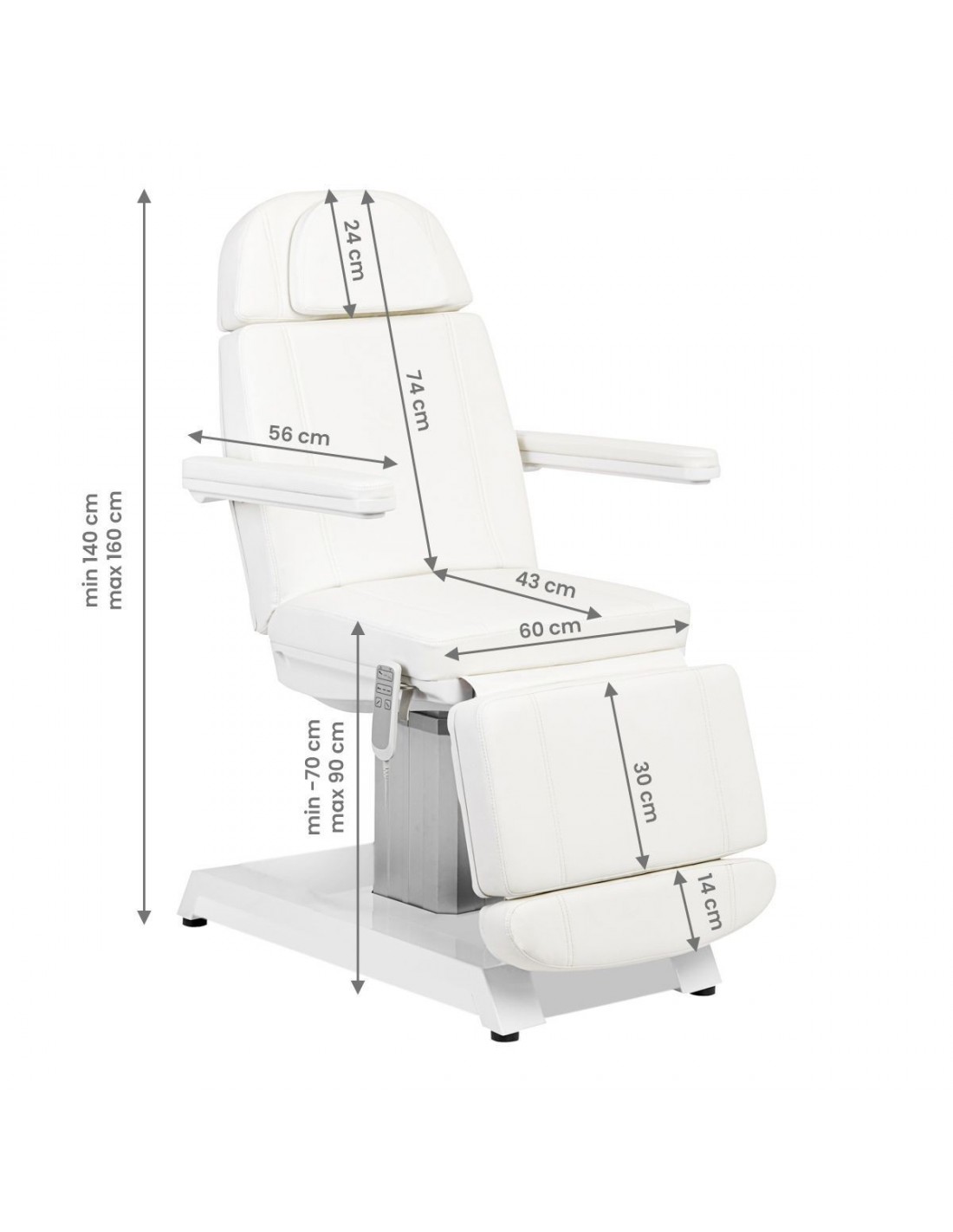 The EXPERT professional electric beauty chair is ideal for beauty salons and SPA salons. Thanks to independent motors, it allows you to adjust the chair in 3 planes using a remote control, allowing you to perform face and body treatments. Using the remote control, we can adjust the height of the chair, the inclination of the backrest, and set the seat in a cradle position. The footrest is independently adjustable using gas actuators. An additional, interesting function is the multi-colored illumination of the armchair base.