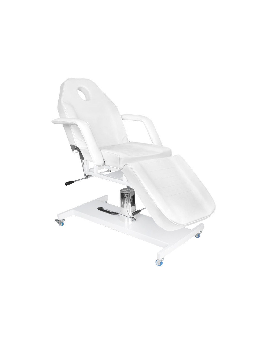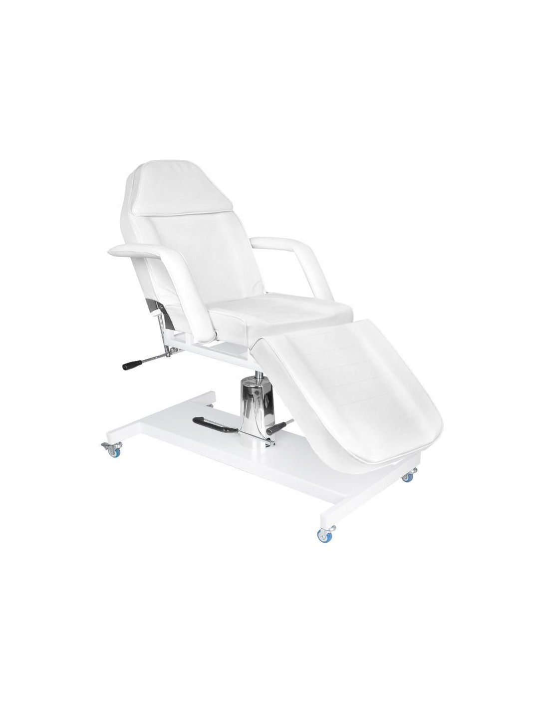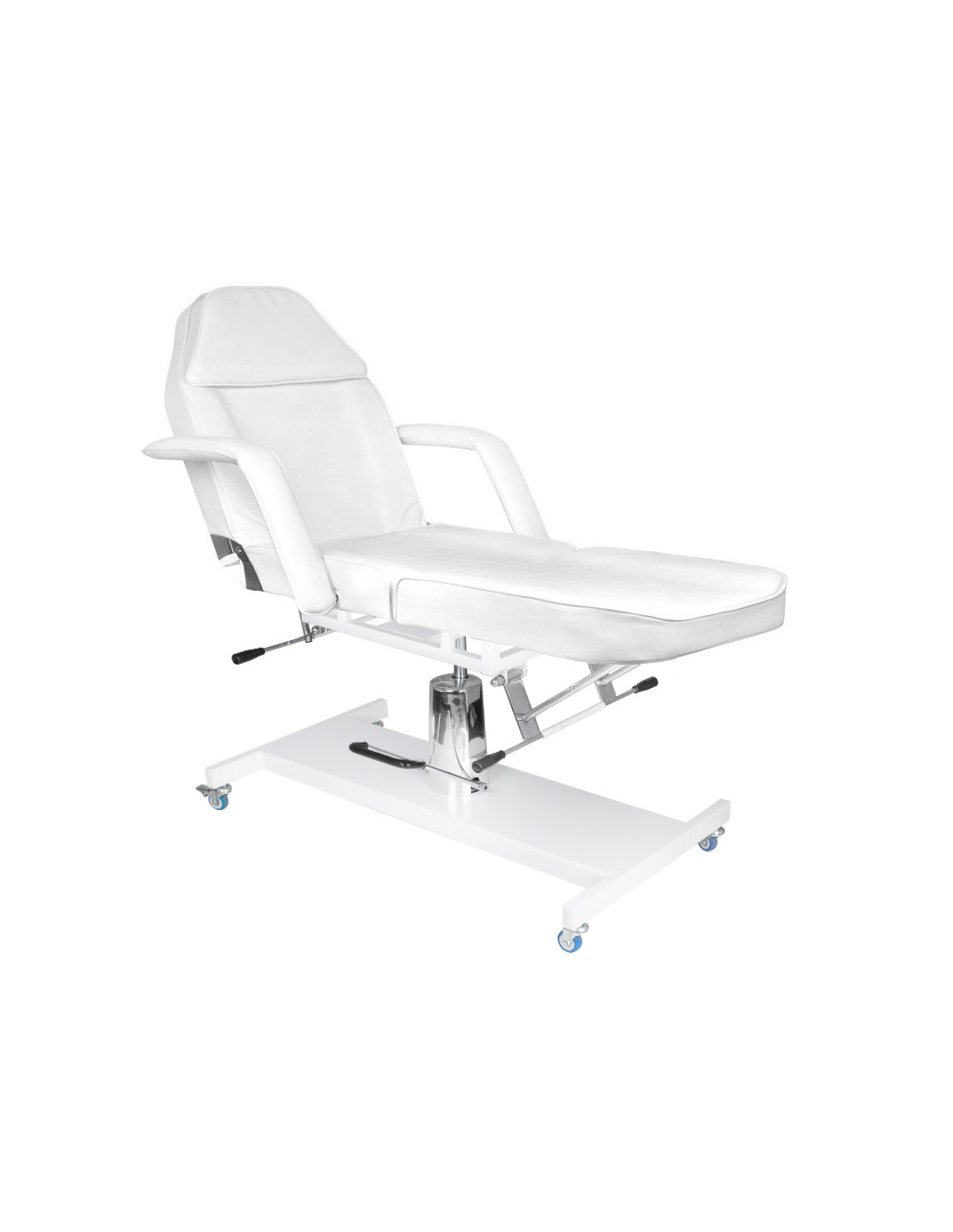 The BASIC 210 hydraulic cosmetic bed white on wheels. EUROPEAN VERSION!