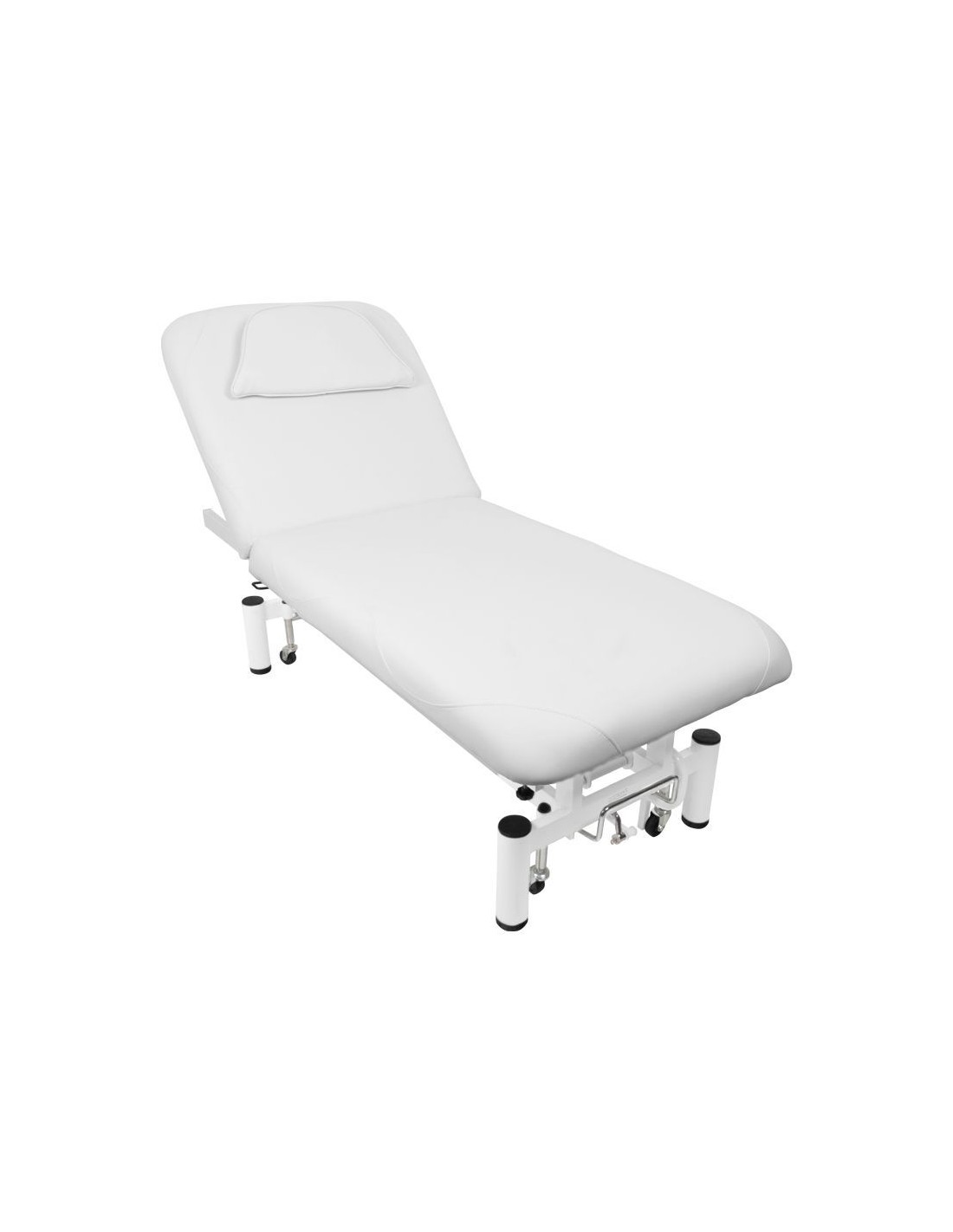 high performance couch, especially for physiotherapy treatments. equipped with 1 motor, the height is electrically adjustable, the backrest and the inclination are manually adjustable. the headrest is a cushion with a vent.