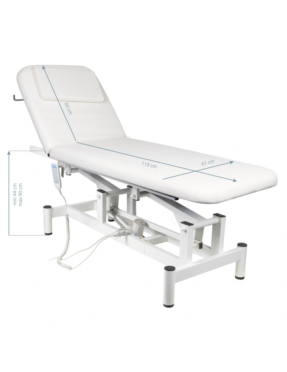 the couch is especially intended for physiotherapy treatments and beauty salons. equipped with 1 motor, thanks to which the height is electrically regulated, the backrest inclination is adjusted manually. the headrest is a pillow that covers the face opening. it has an exceptionally stable structure and a comfortable worktop.