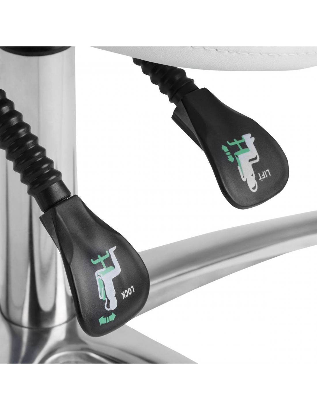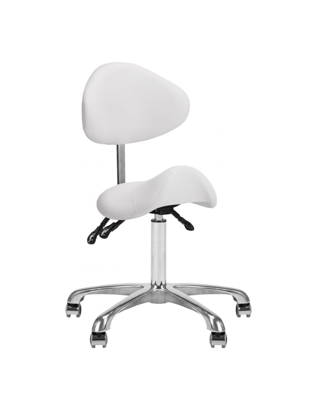 Chair on wheels for hairdressers and beauty salon. Gas-lift height adjustment Swivel seat (360 degrees) Base type - on wheels Seat width - 38 cm Backrest height - 25 cm Minimum seat height - 40 cm Maximum seat height - 60 cm If you have any questions don't hesitate call 01 4429939 or 089 499 11 41
