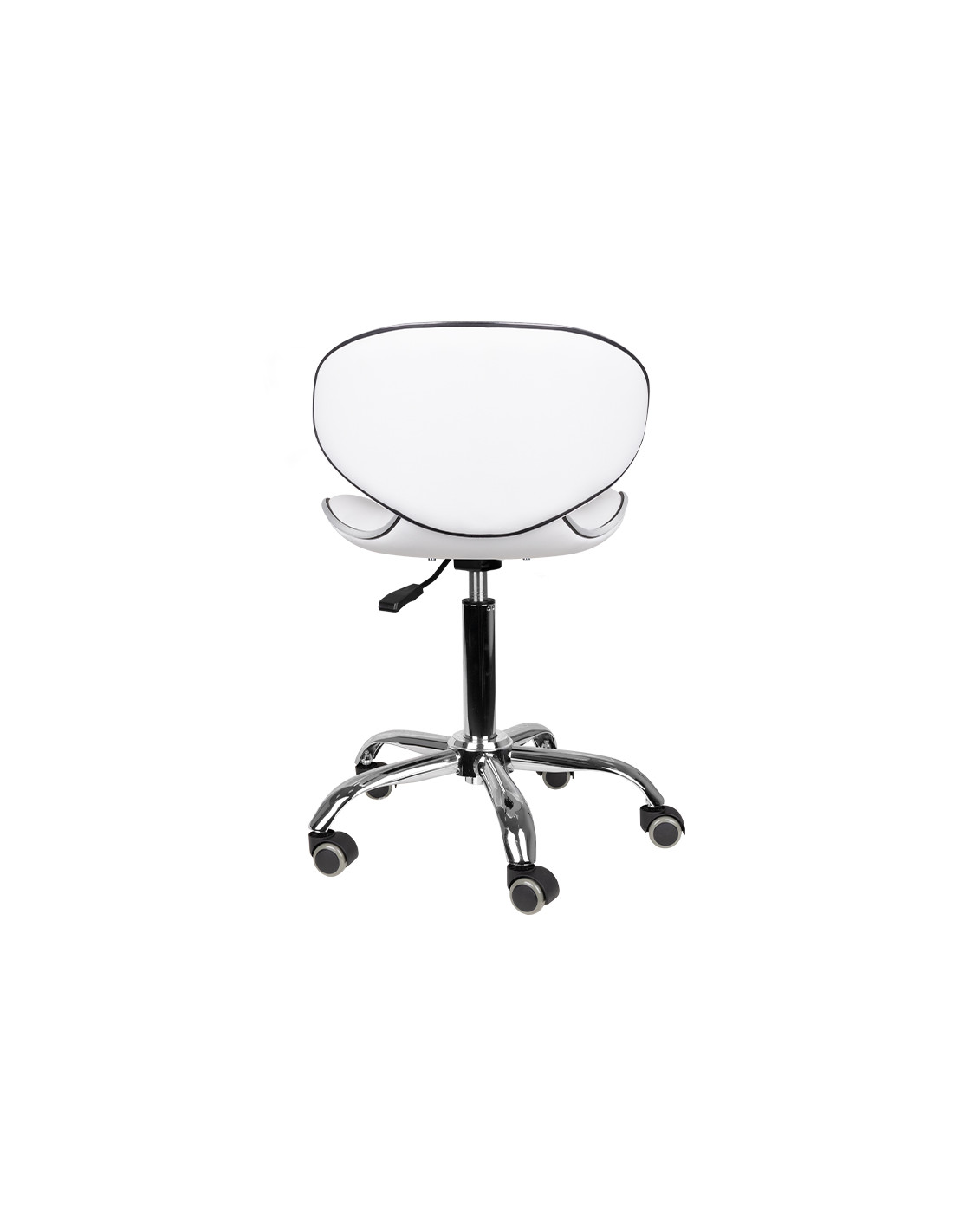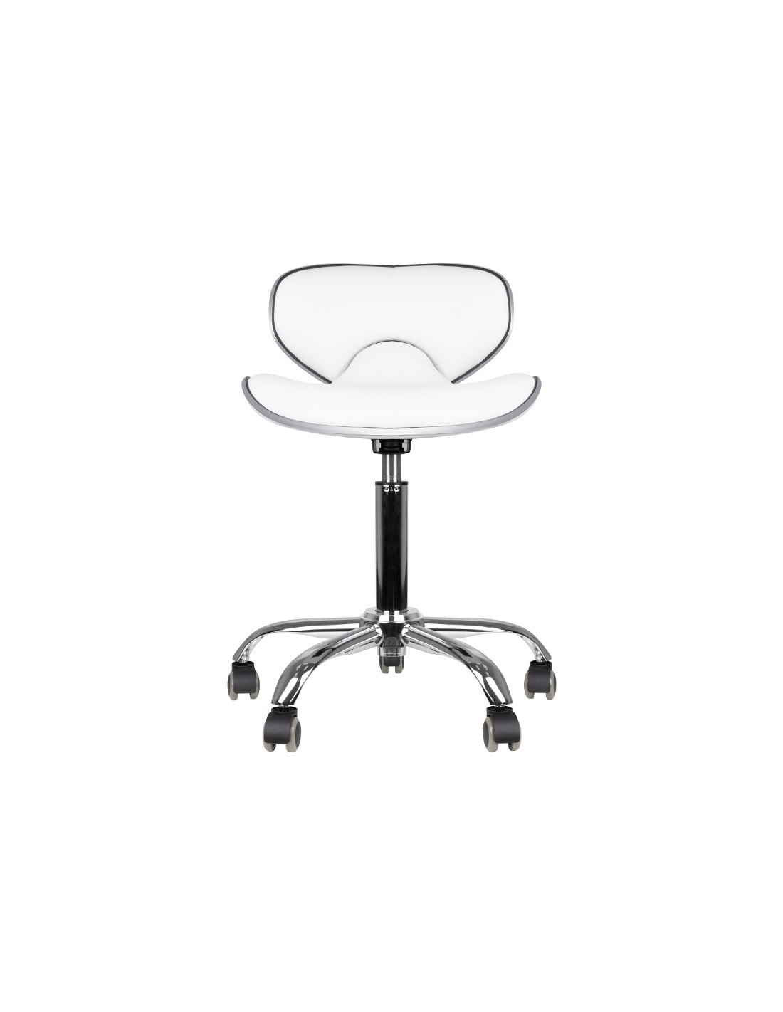 Chair on wheels for hairdressers and beauty salon. Gas-lift height adjustment Swivel seat (360 degrees) Base type - on wheels Seat width - 38 cm Backrest height - 25 cm Minimum seat height - 40 cm Maximum seat height - 60 cm If you have any questions don't hesitate call 01 4429939 or 089 499 11 41