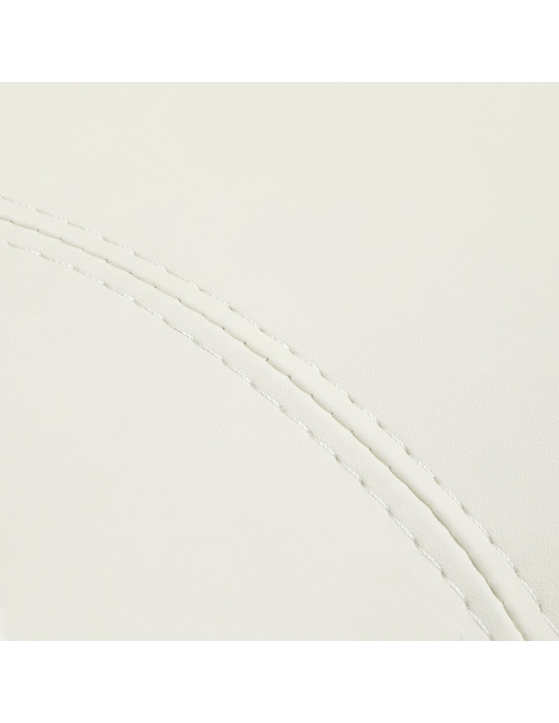 The five-star, properly designed base makes the stool stable, even during intensive work. Additionally, it is equipped with wheels, which makes it easier to move. The chair is stable and durable. The upholstery is made of imitation leather in shades of white; thanks to the use of such material, it is resistant to moisture and easy to clean.