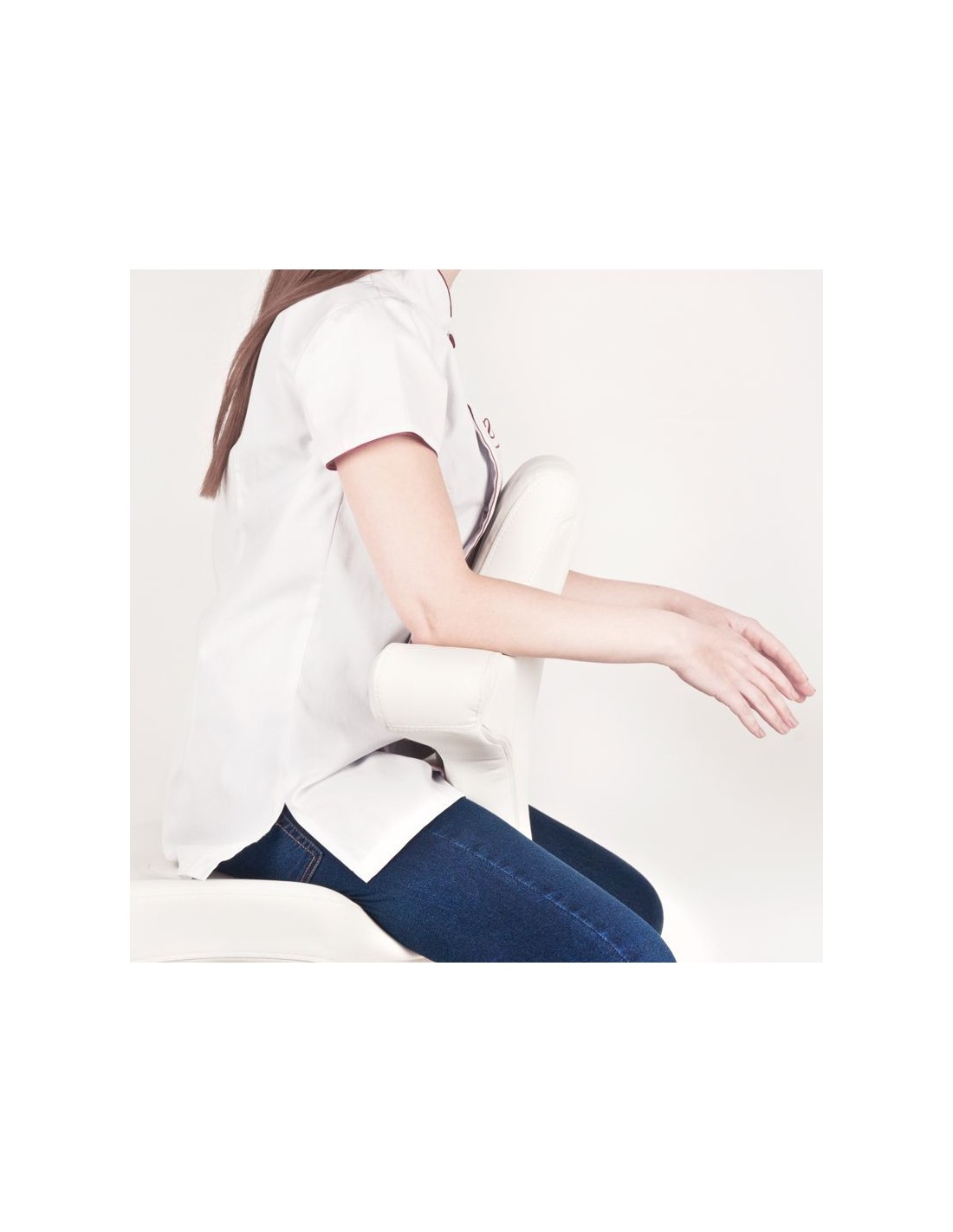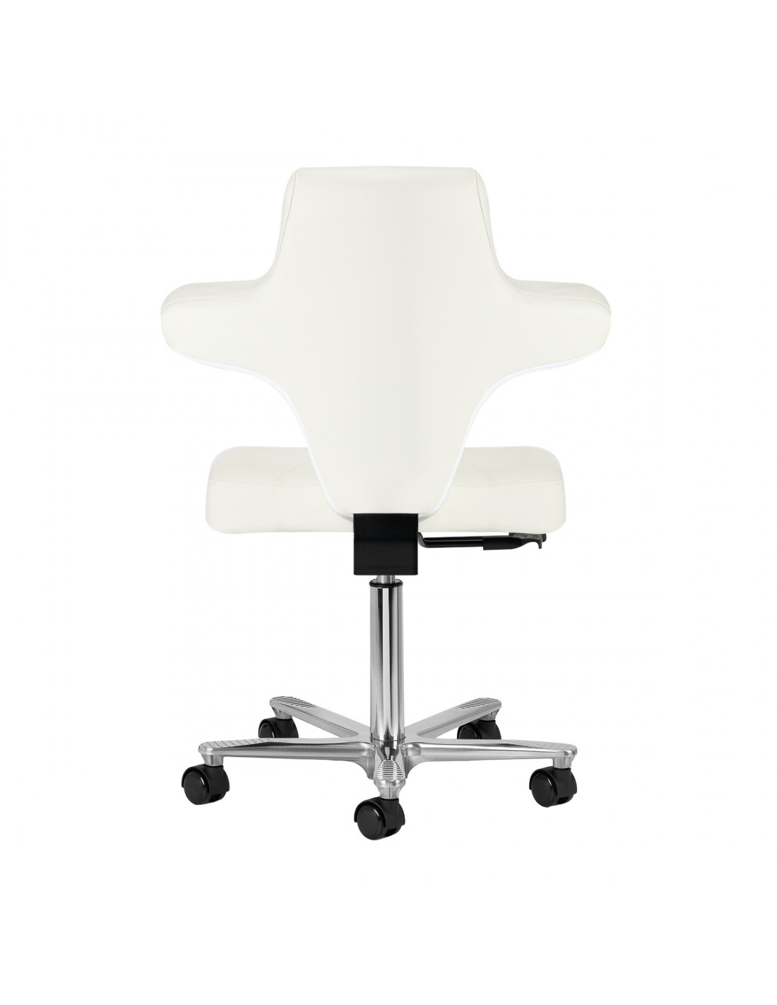 The possibility of adjusting the height in the range of 55-75 cm allows you to take the appropriate position while performing services. The side projections allow you to support your hands when sitting backwards on the chair, especially during services such as massage or makeup. Full rotation mechanism makes work more effective and convenient. The chair also has a lockable cradle function, which allows for ergonomic body positioning while working. The seat extension can also be manually adjusted.