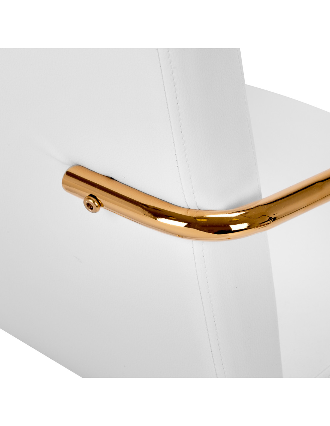 The pleasant-to-the-touch, synthetic leather upholstery in shades of grey gives the furniture a unique character. The elegant finish makes it a real eye-catcher. The frame in shades of gold adds elegance, perfectly matching simple shapes. Functional castors provide significant mobility, making it easier to move the chair and move around the salon while working. The aesthetics of workmanship, comfort of use and ergonomically profiled backrest make the chair meet the requirements of even the most demanding users.