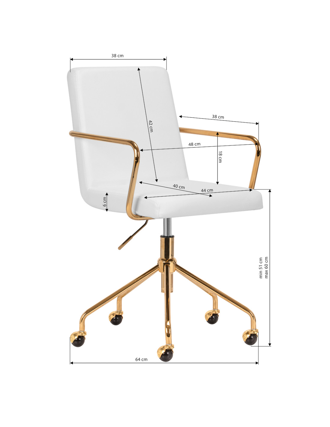 The efficient gas lift allows for easy and smooth adjustment of the seat height between 51-60 cm. This allows the piece of furniture to be tailored to individual needs and services, ensuring high comfort of use – both when applying makeup, eyebrow styling, and during other activities. The full rotation mechanism improves work efficiency and comfort. The metal armrests are at the right height, allowing for proper shoulder positioning.