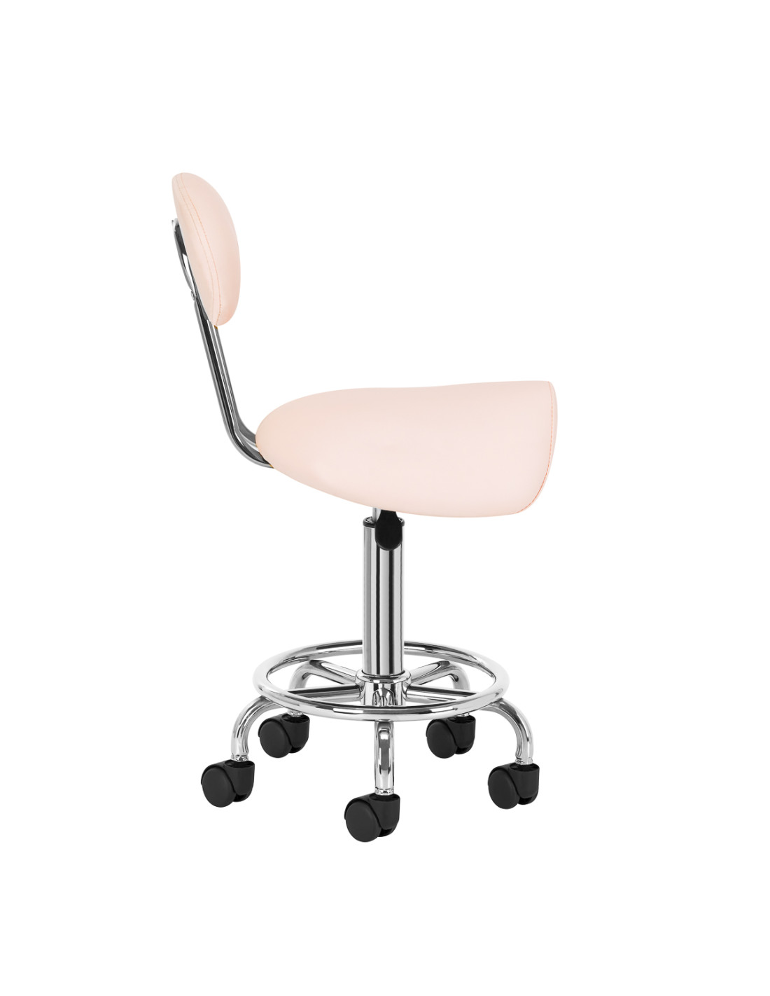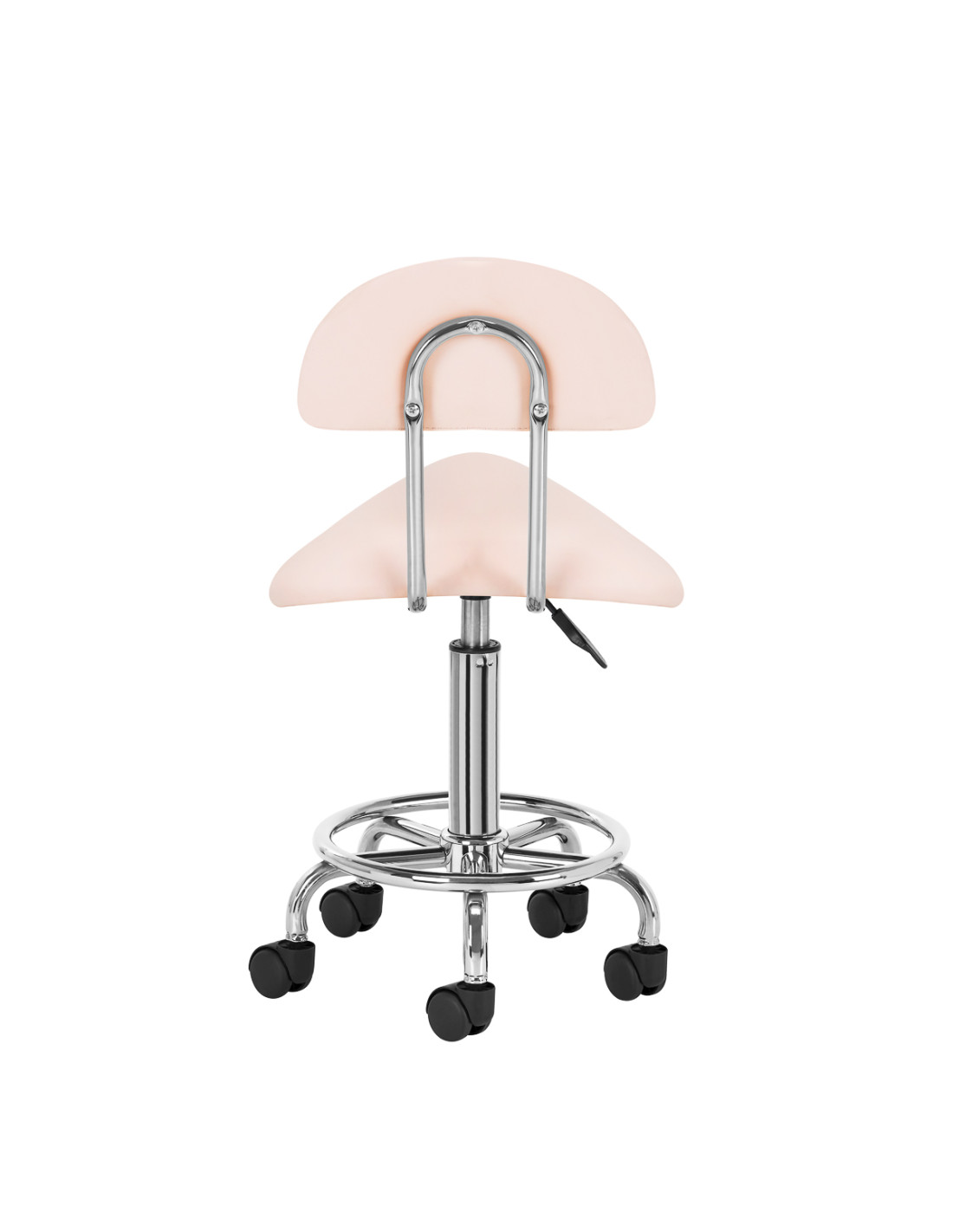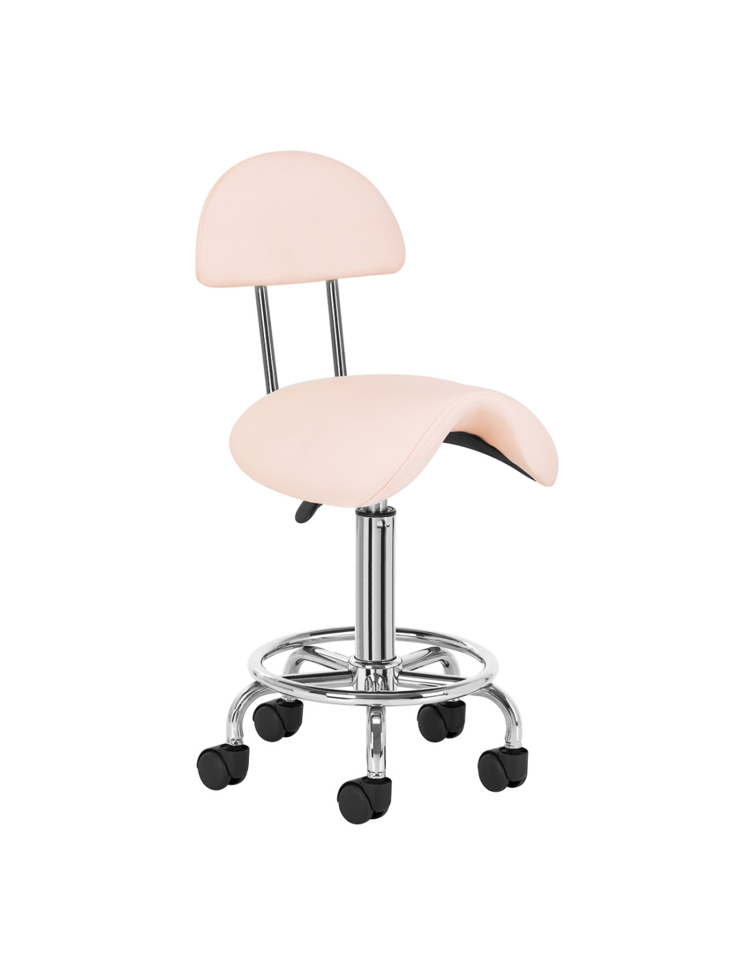 The ability to adjust the seat height in the range of 49-62 cm makes it easier for the specialist to properly position the body while performing services. The seat profiled in the shape of a saddle filled with durable, deformation-resistant foam guarantees users comfort and ergonomics of work. The comfortable backrest provides excellent back support, regardless of the user's height. The full rotation mechanism makes work more effective and comfortable.