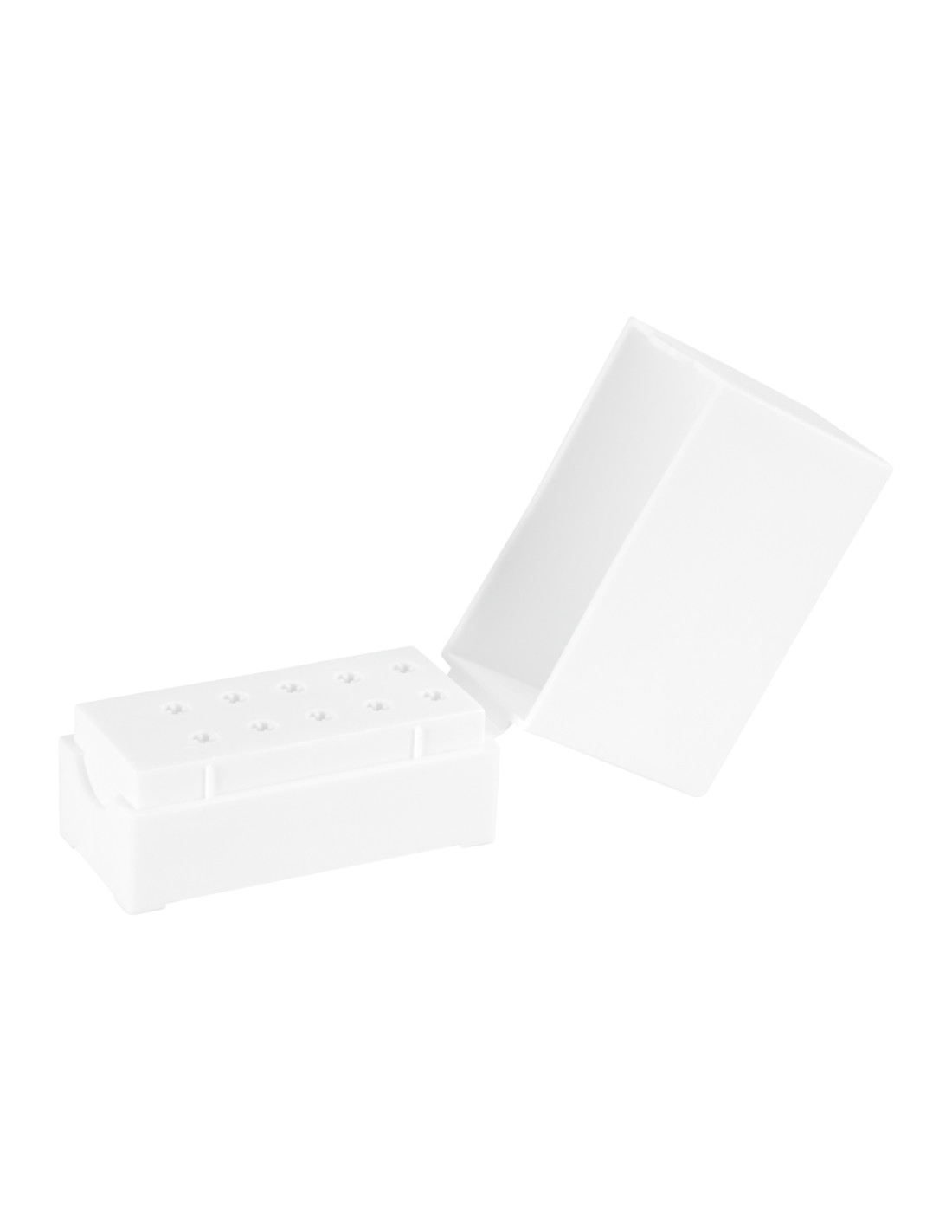 The practical EXO 2 nail drill bits stand has 10 holes, which makes it easier to store and organize the cutters necessary for manicure. The plastic base with a cover protects against the accumulation of dirt, dust and other contaminants, thus maintaining occupational hygiene. A durable and stable stand will allow you to keep greater order and much better organization when working with the nail drill machine.