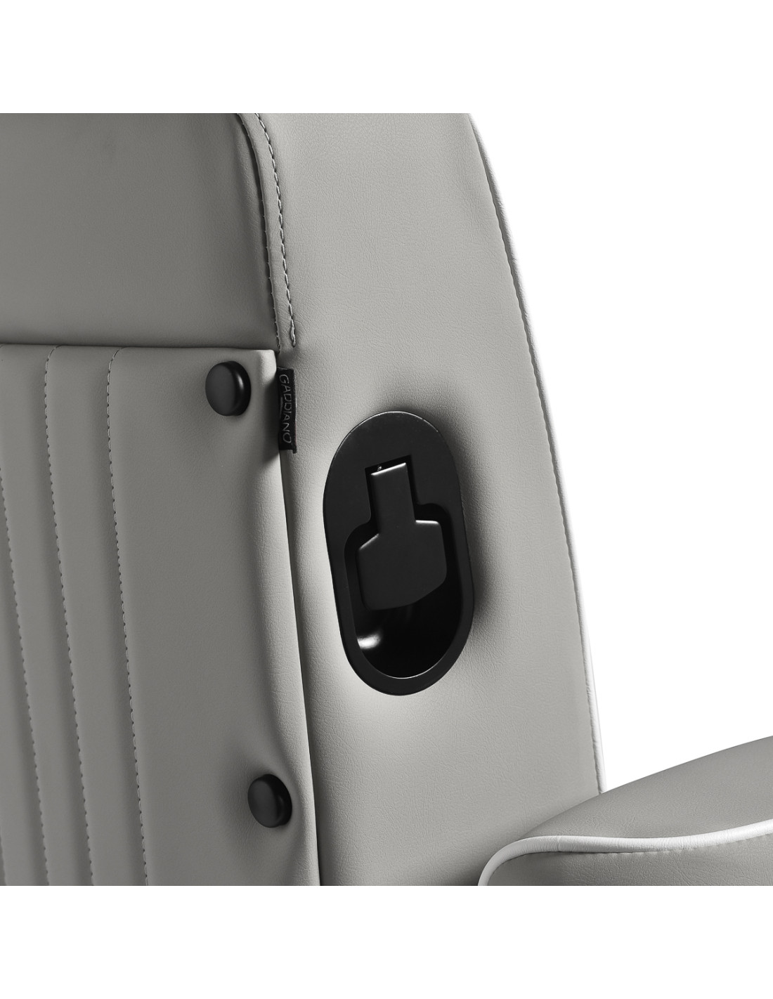 Gabbiano Levi barber chair with black frame gray with stitching at the back