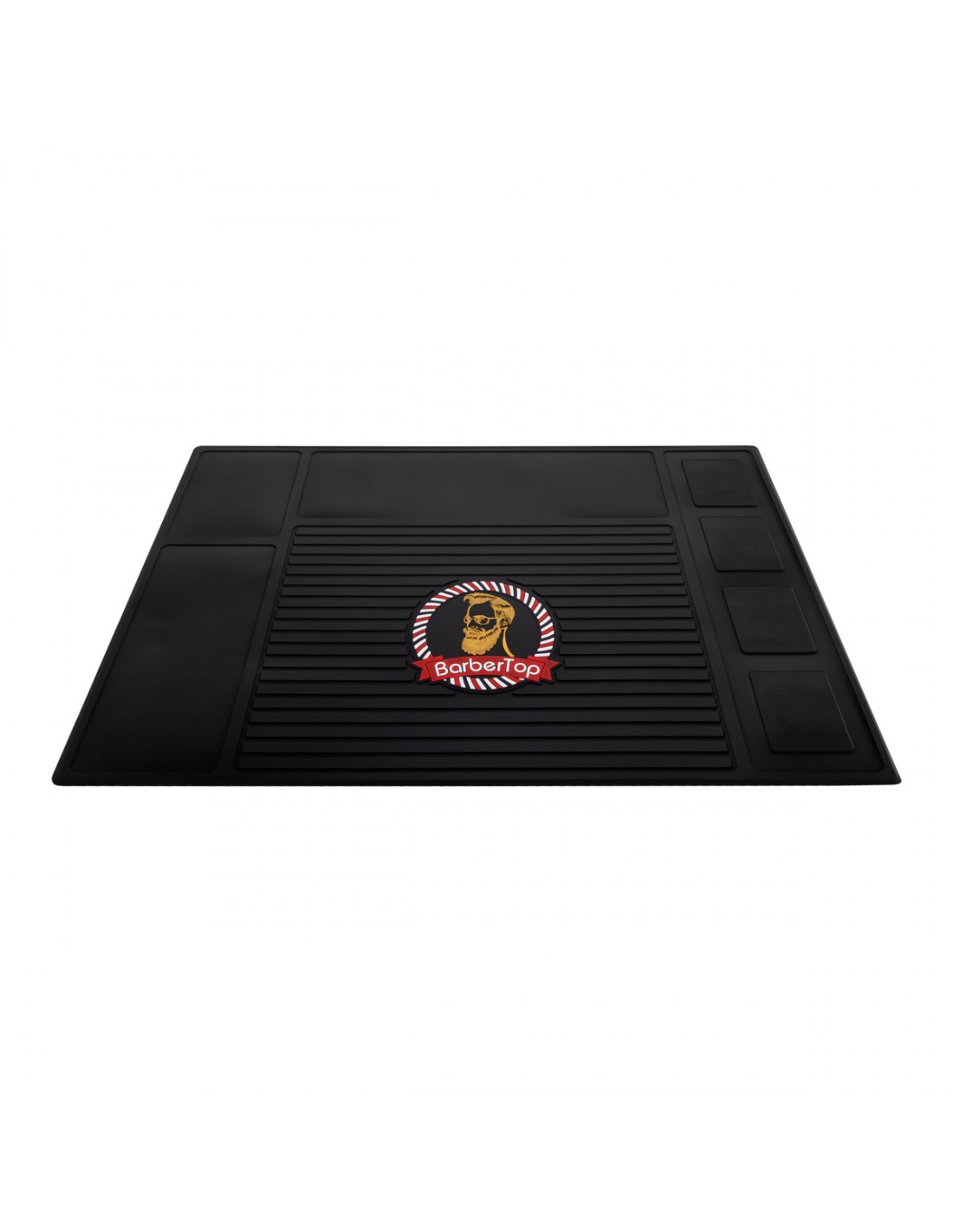 Non-slip and protective mat for hairdressing accessories. High quality, made of thick rubber. It limits the possibility of scratches on accessories and the table top, equipped with strong magnets that keep razors and accessories in a designated place. Easy to clean under running water.