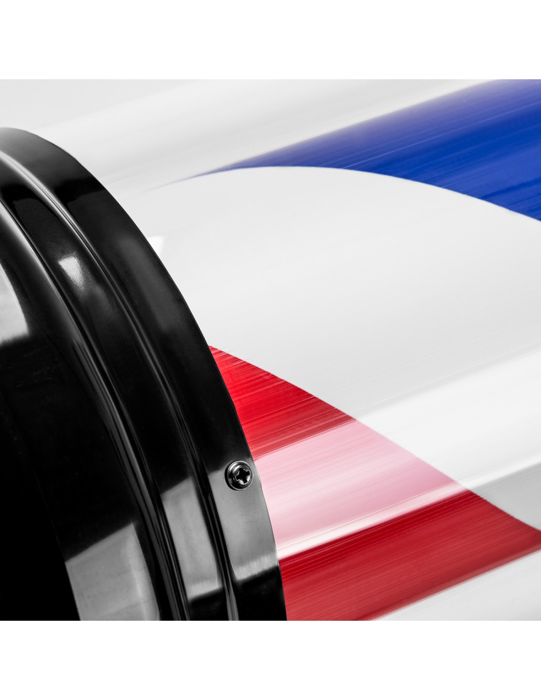 An eye-catching illuminated plafond, equipped with a rotating cylinder, is an excellent advertisement for a barbershop. The distinctive design, with rotating elements in red, white and blue, creates a unique, internationally understood business card of the barbershop. Using the wired remote control, you can turn on both the lighting and the rotation of the plafond.