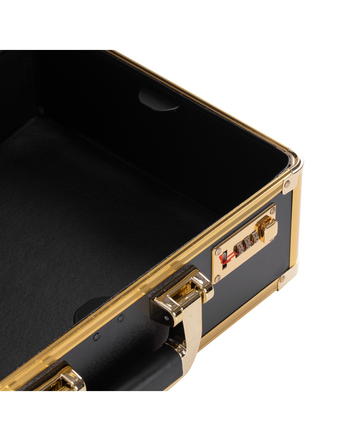 Made of high-quality materials, the case is characterized by long-lasting resistance to damage. Modern gold and black finish with lacquered elements give unique, professional look that attracts attention. Solid construction and aesthetics result in a product that combines functionality with elegance. The convenient handle makes it easy to carry, making it ideal for mobile barbers and hairdressers.