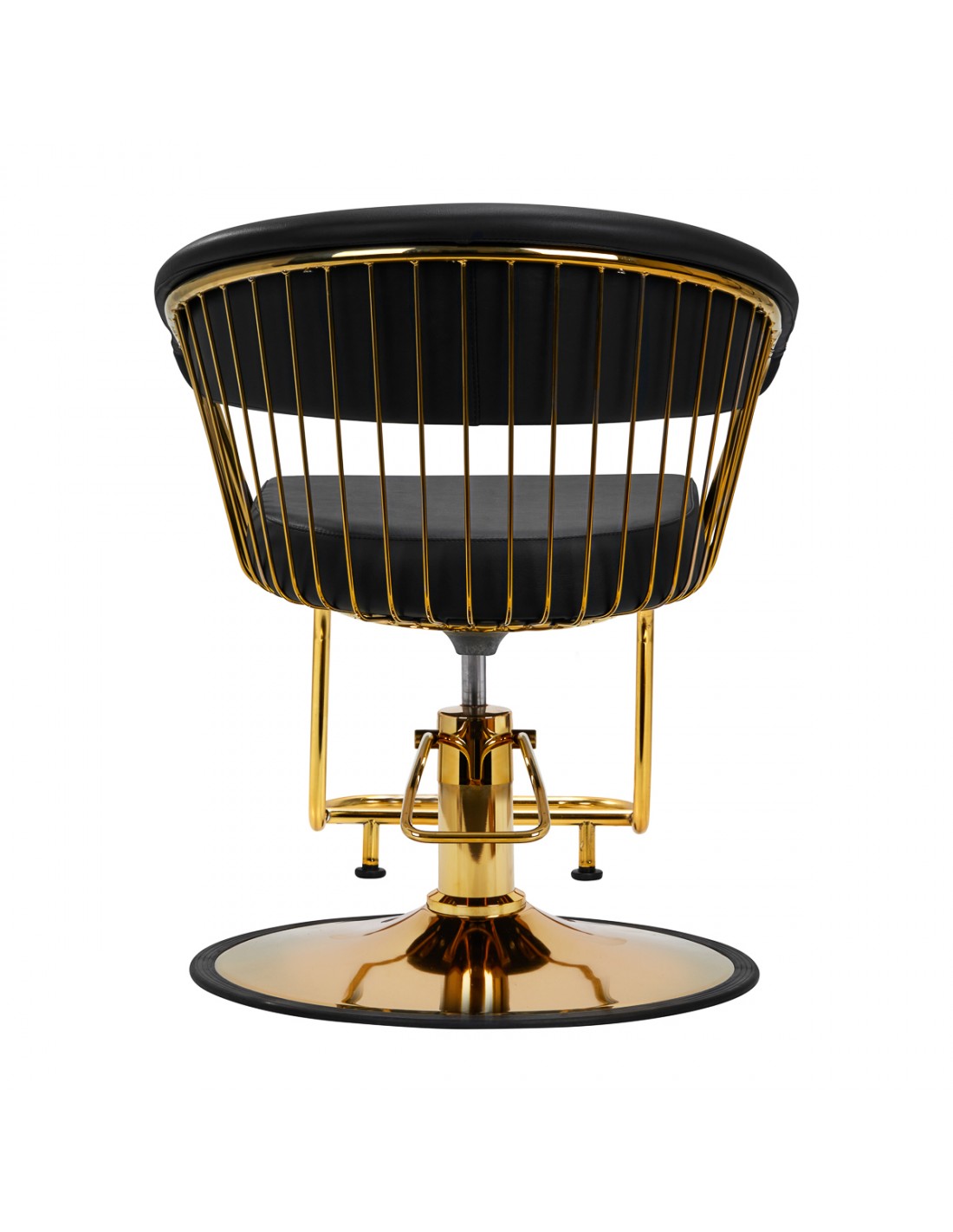 The durable hydraulic lift allows you to adjust the seat height within 48-55 cm, even when the customer is sitting on the chair. This guarantees more ergonomic work, thanks to the ability to freely adjust the level of the chair to the height of both the client and the hairdresser and the option of full rotation. The perfectly profiled backrest covered with synthetic leather allows you to take a comfortable position. This provides adequate support for the back, which is especially important for treatments lasting many hours. A visually interesting element here is a metal, polished, sophisticated detail in shades of gold connecting the backrest with the seat. The spaces created make it easier to keep the salon clean, allowing you to easily sweep hair from every nook and cranny of the chair. This saves time preparing the workstation between clients.