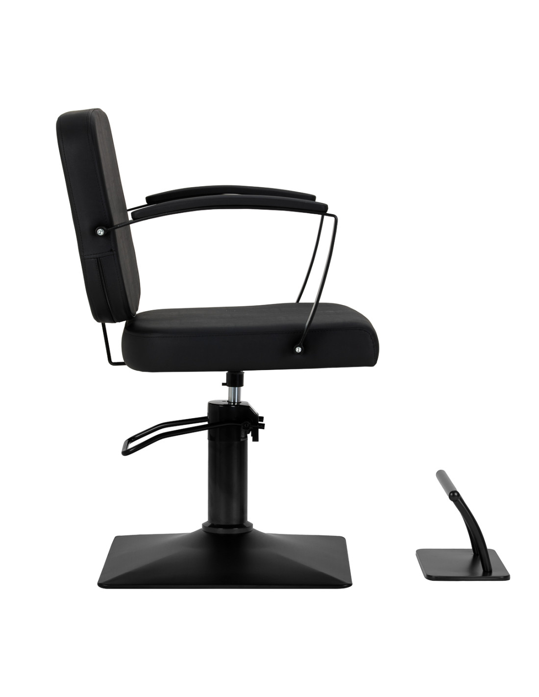 The minimalist Hair System Edge noir Styling chair, equipped with an efficient hydraulic lift and separate footrest, is an aesthetic and functional addition to the salon space. The classic, subdued colour scheme in shades of black combined with decorative details gives it an elegant, modern character. The high functionality guarantees comfort for both hairdressers and clients.