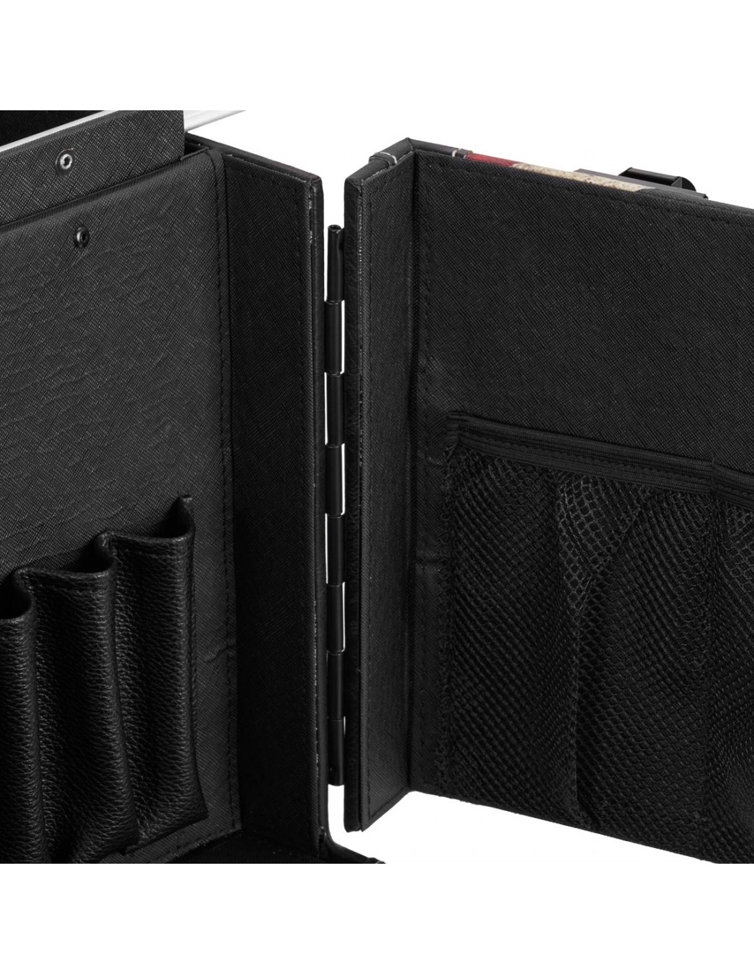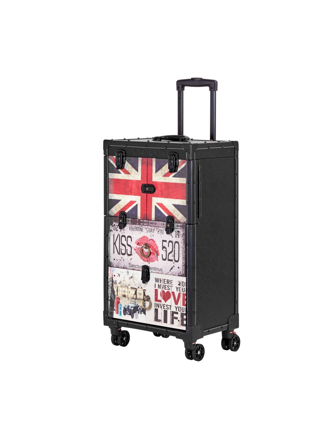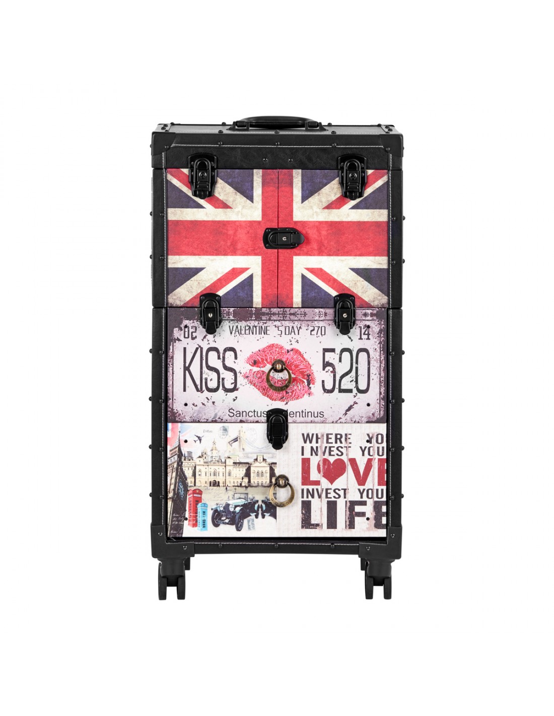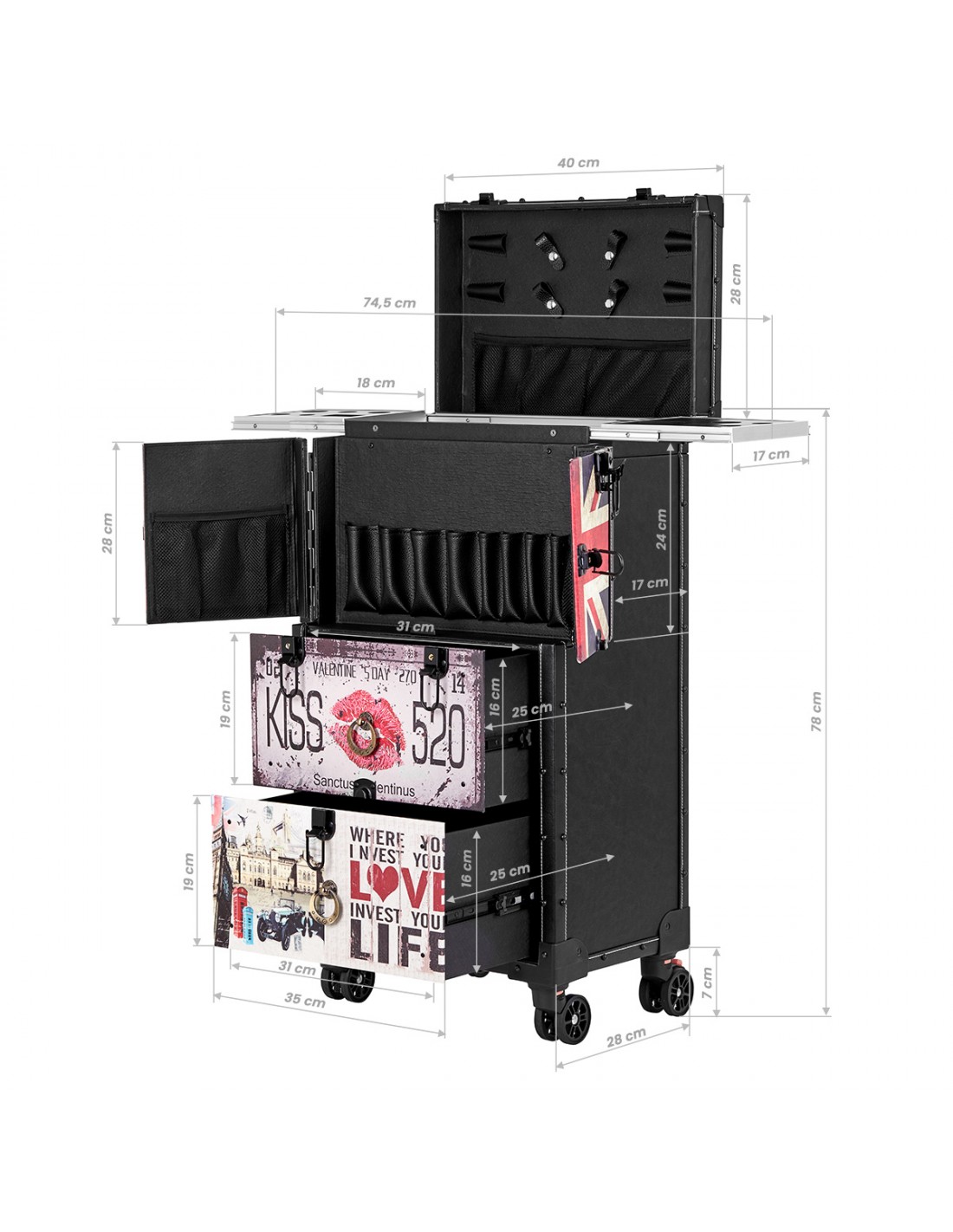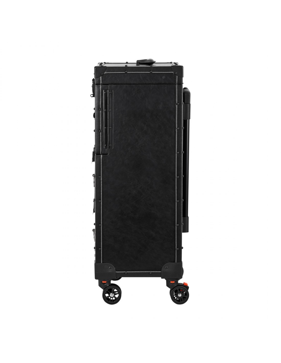 The characteristic style of the Gabbiano C12 Trolley is a the perfect solution for barbershops that appreciate the unique look and elegant details. The fronts of the cabinets are decorated with stylized British patterns, which will certainly emphasize the atmosphere of the interior. The material imitating leather in shades of black and metal elements add elegance, masculine character and a luxurious look to the furniture. This Trolley will be a great choice for people who appreciate both interesting design and functionality.
