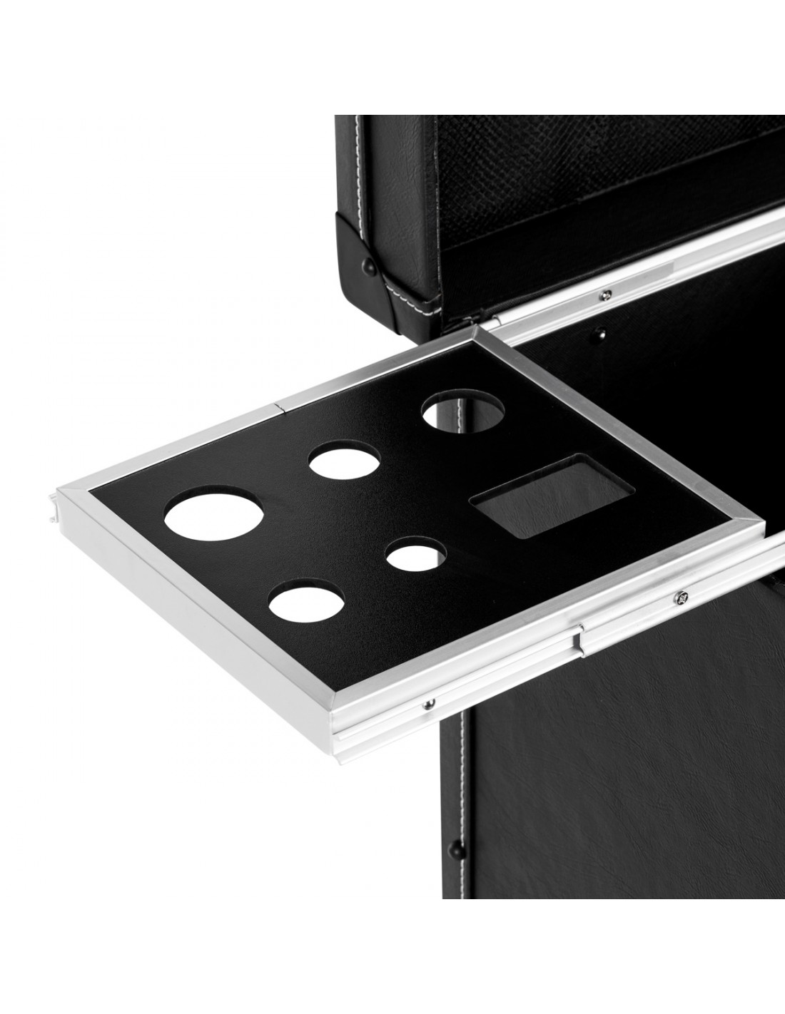 The capacious organizer is equipped with a large number of compartments. Pull-out shelves with handles and places for accessories, drawers, compartments and special pockets for storing barbering products and tools make it easier to keep your work area tidy and significantly improve the organization of the space. Easy assembly and removal of the wheels improve the mobility of the furniture, thanks to which the Trolley can be moved freely. The extendable handle, located at the back of the Trolley, allows the furniture to be easily transported.