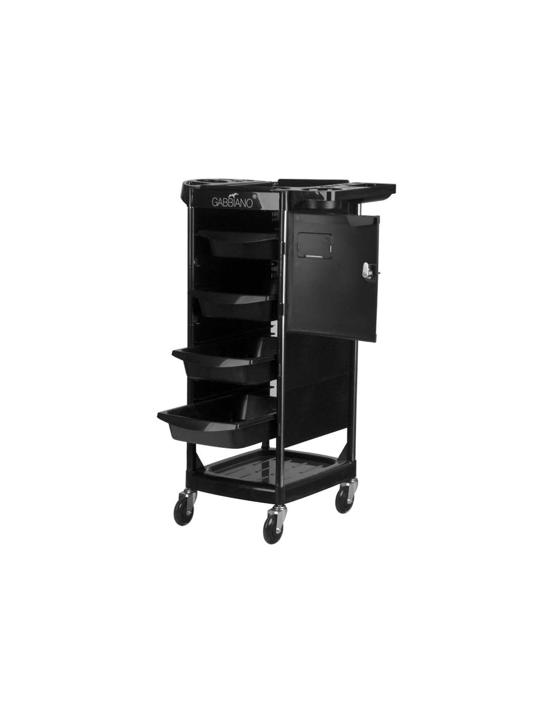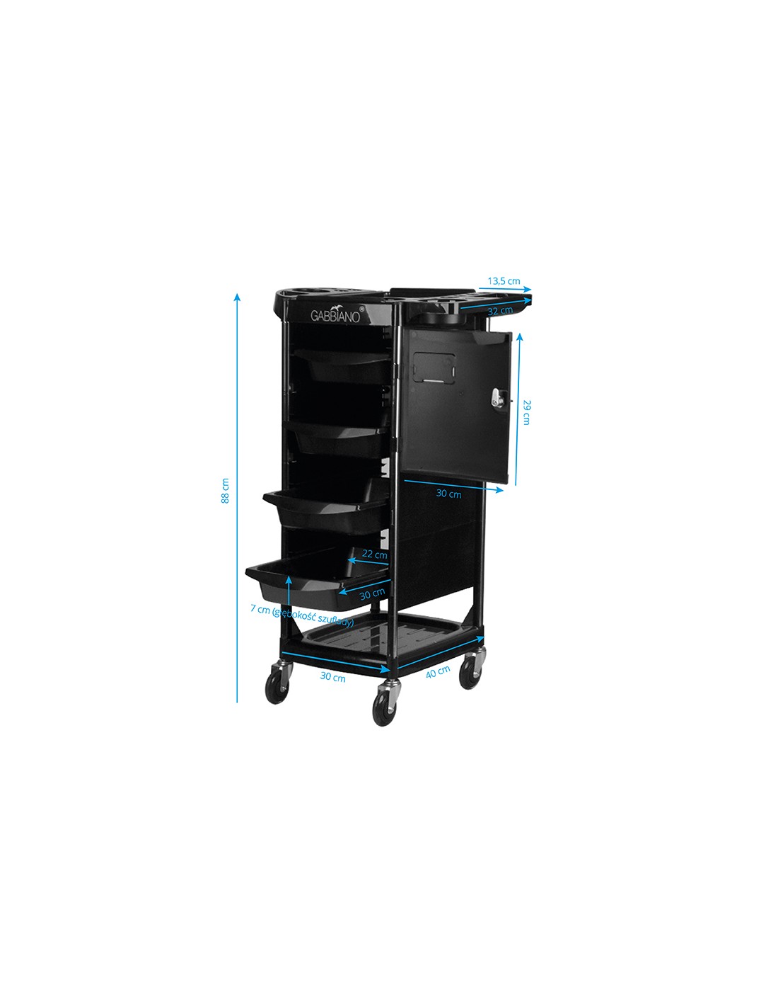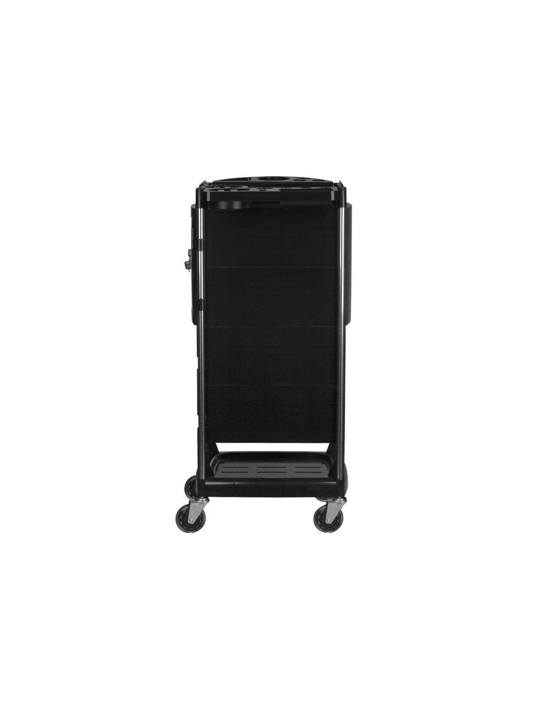 This trolley is a high-quality piece of furniture. It is made of durable ABS plastic with a steel frame structure, ensuring high stability and durability. The whole thing is mounted on very durable rubber wheels with bearings. The classic black color will perfectly match the decor of your salon!