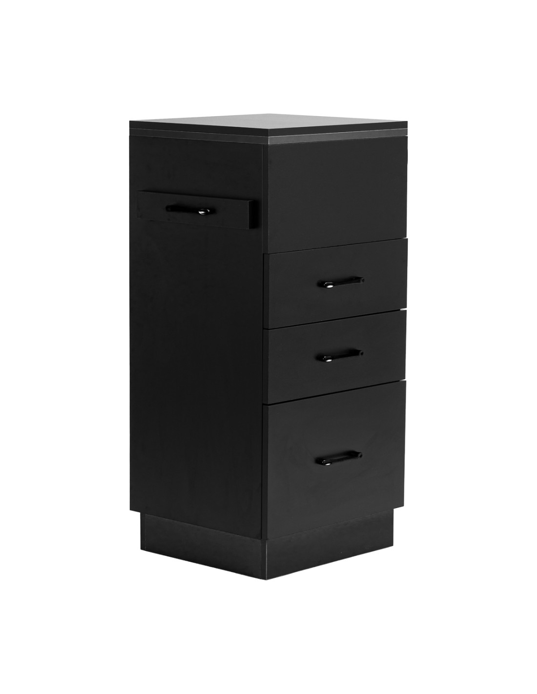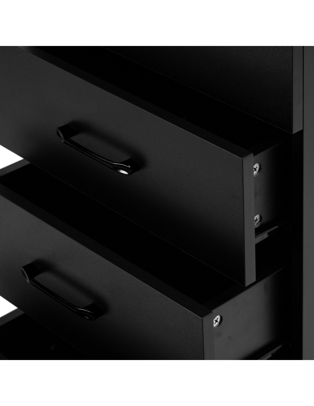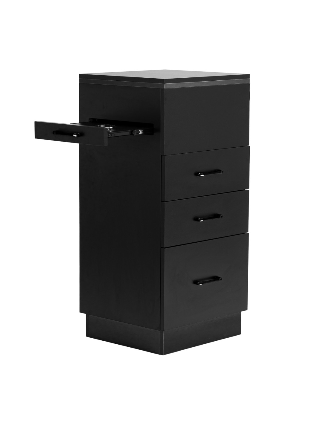 The classic black gives the Trolley a modern, prestigious character, which fits perfectly into both minimalist and more expressive arrangements. The solid construction ensures stability, while the smooth surface makes it easy to keep the furniture clean. The black handles not only emphasise the elegant design, but also ensure convenient opening of each drawer. It is a practical solution for a hairdressing salon, where order, convenient access to tools and aesthetics of the workstation matter.