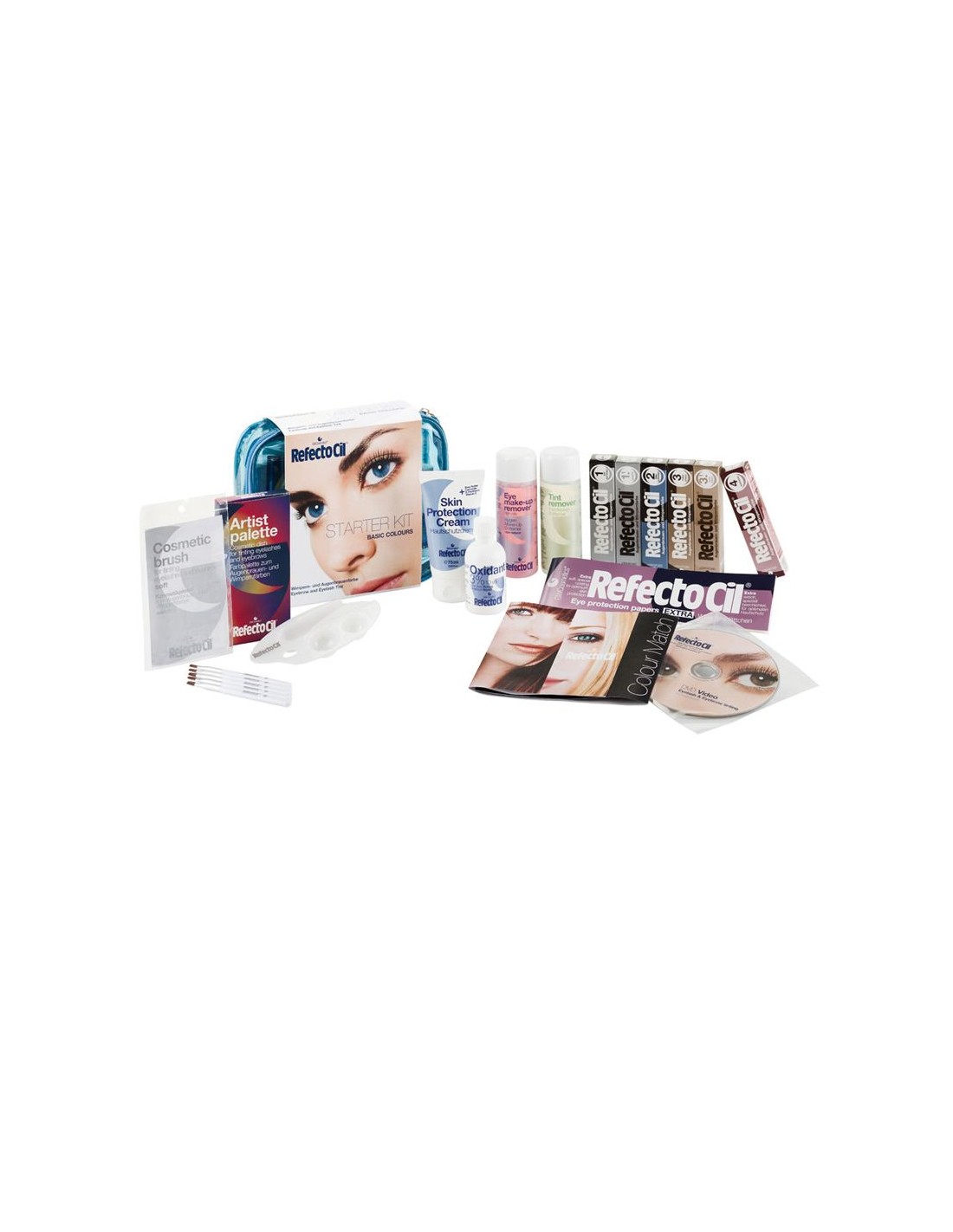 refectocil starter kit basic colors is a professional starter kit for people who want to try refectocil paints or start their adventure with eyebrow and eyelash coloring. the package contains all the necessary accessories, as well as refectocil paints in popular colors: deep black, blue black, natural brown, light brown, graphite and chestnut.