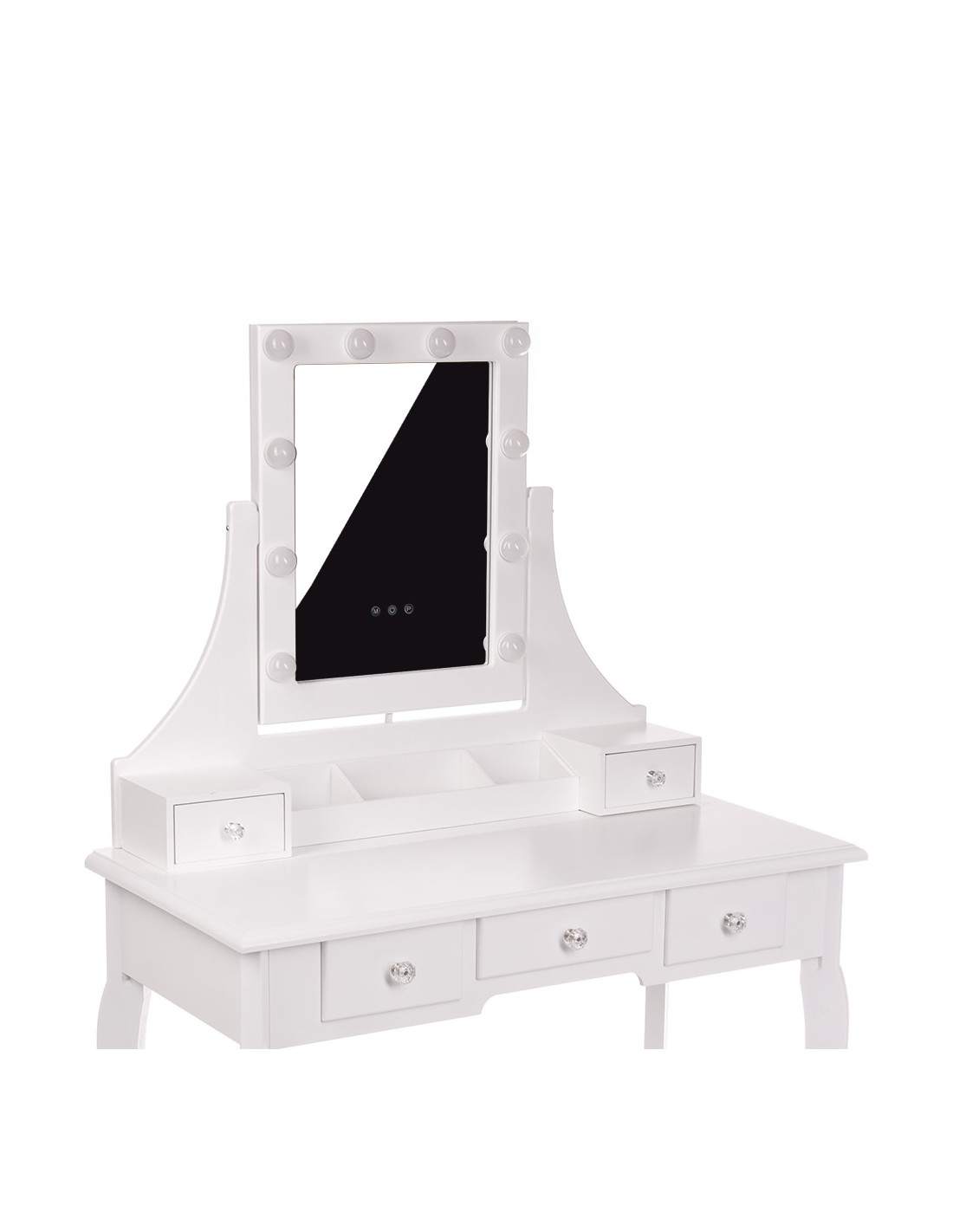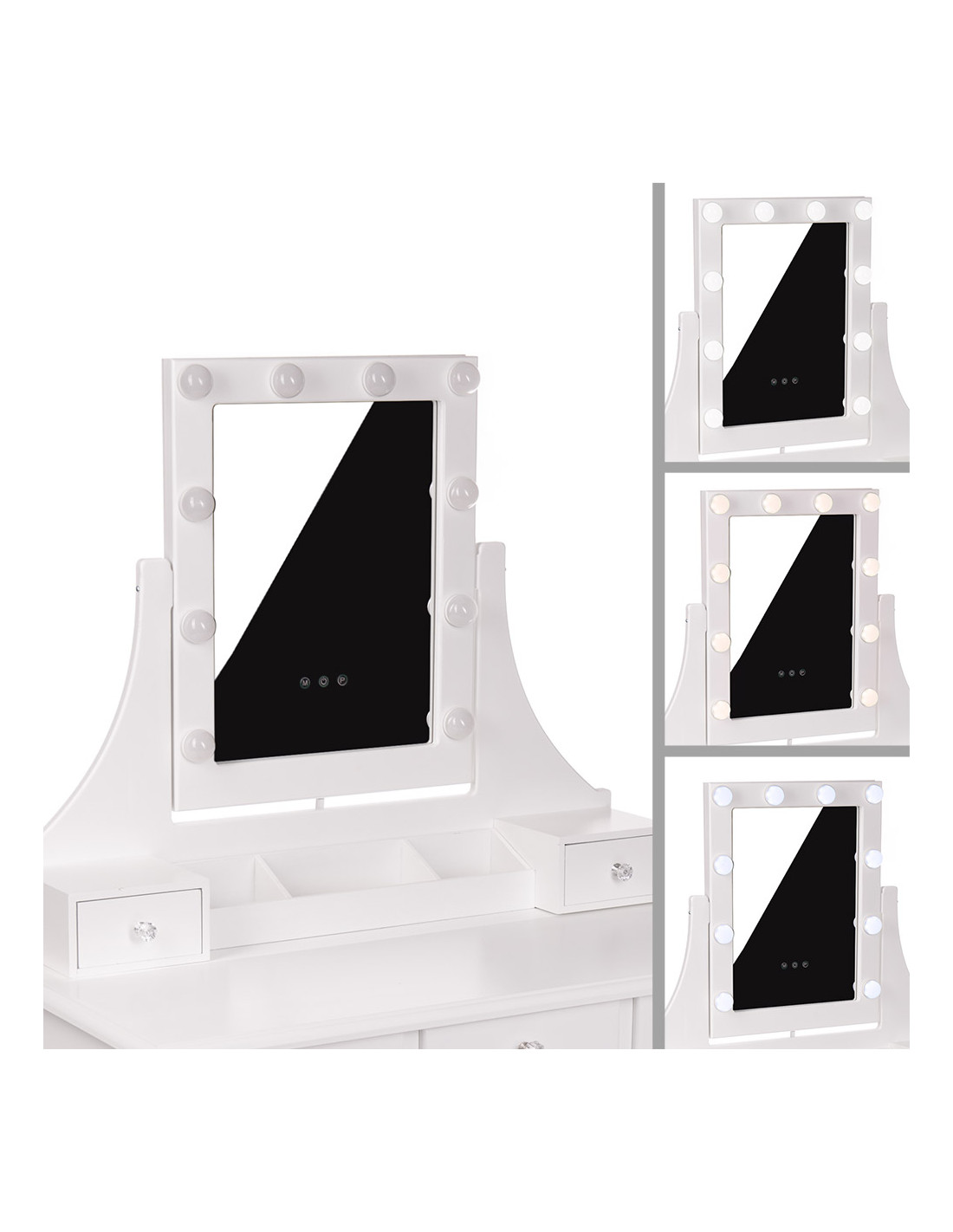 Toaletka biała MONICA lustro LED + taboret