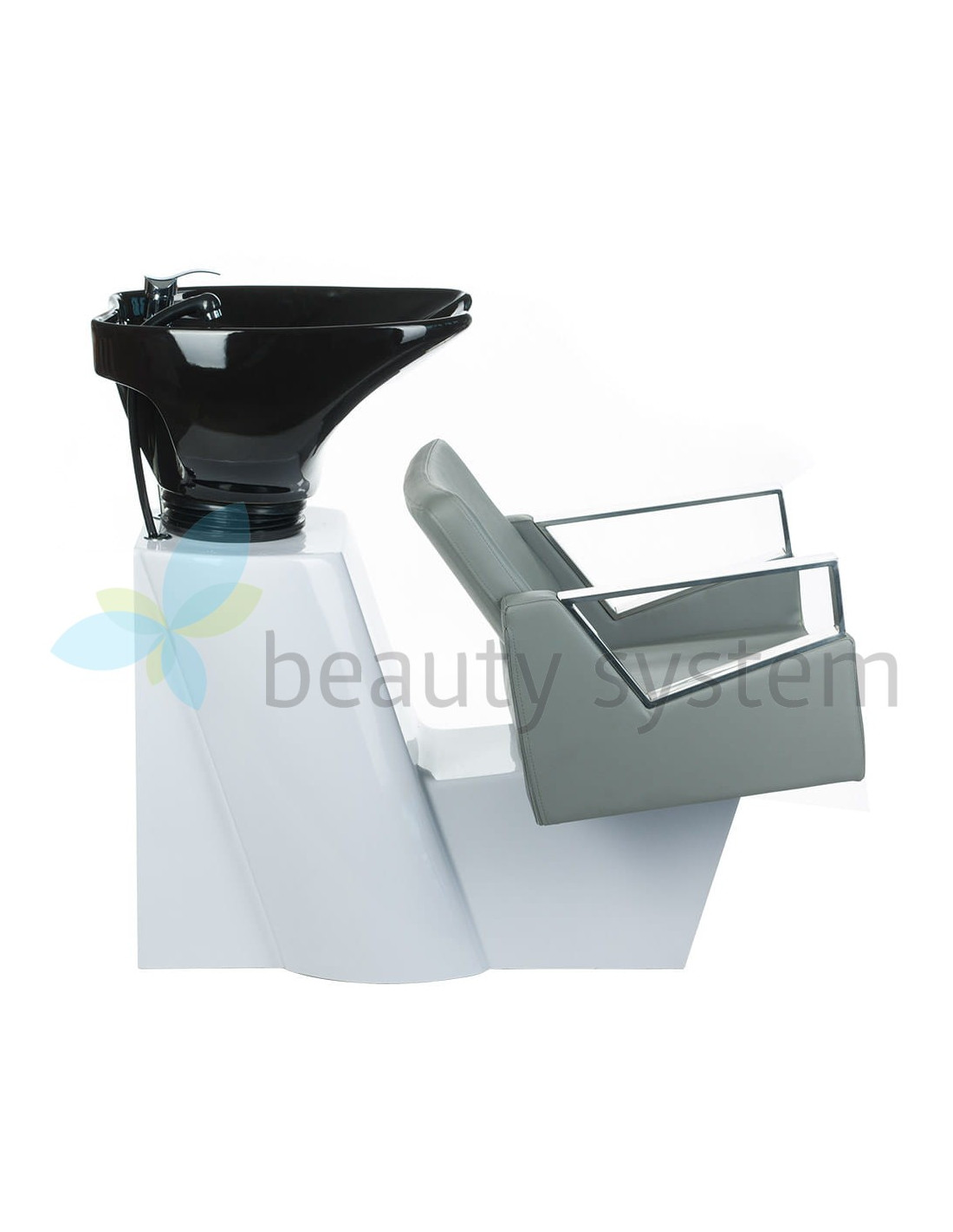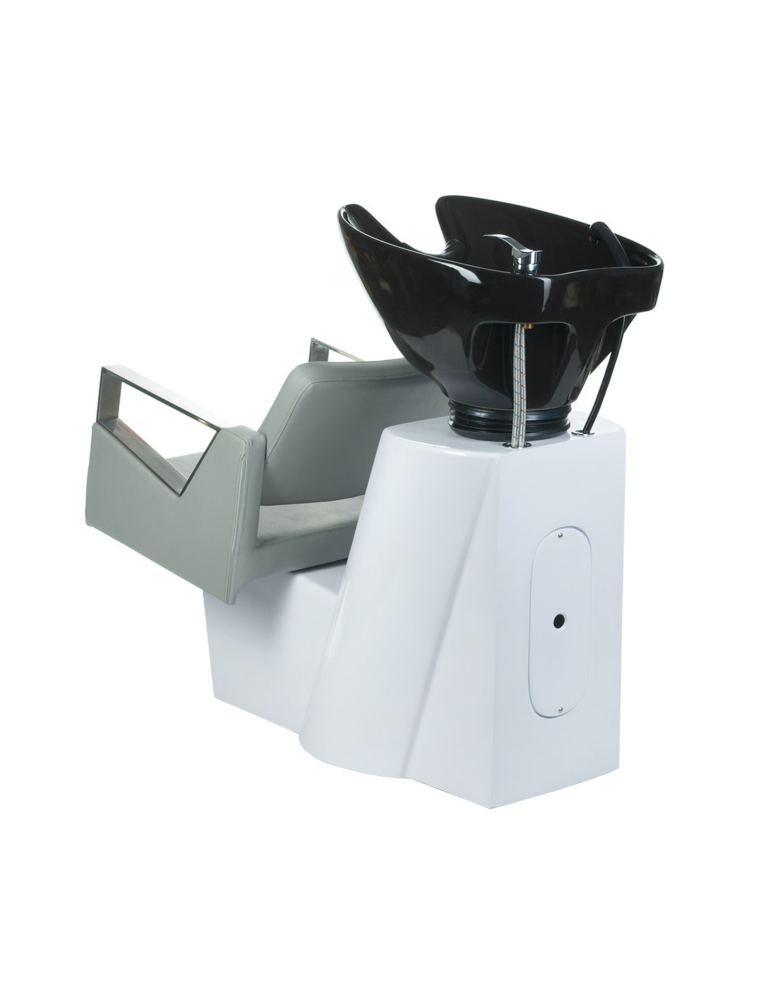Hairdressing furniture largely determines clients' choice of salon. Top-level services and decor determine business success. The proposed hairdressing shampoo unit features a wide and very comfortable seat, and an ergonomically profiled backrest. The adjustable bowl tilt angle ensures comfort during washing.