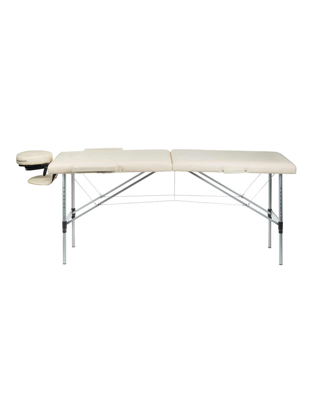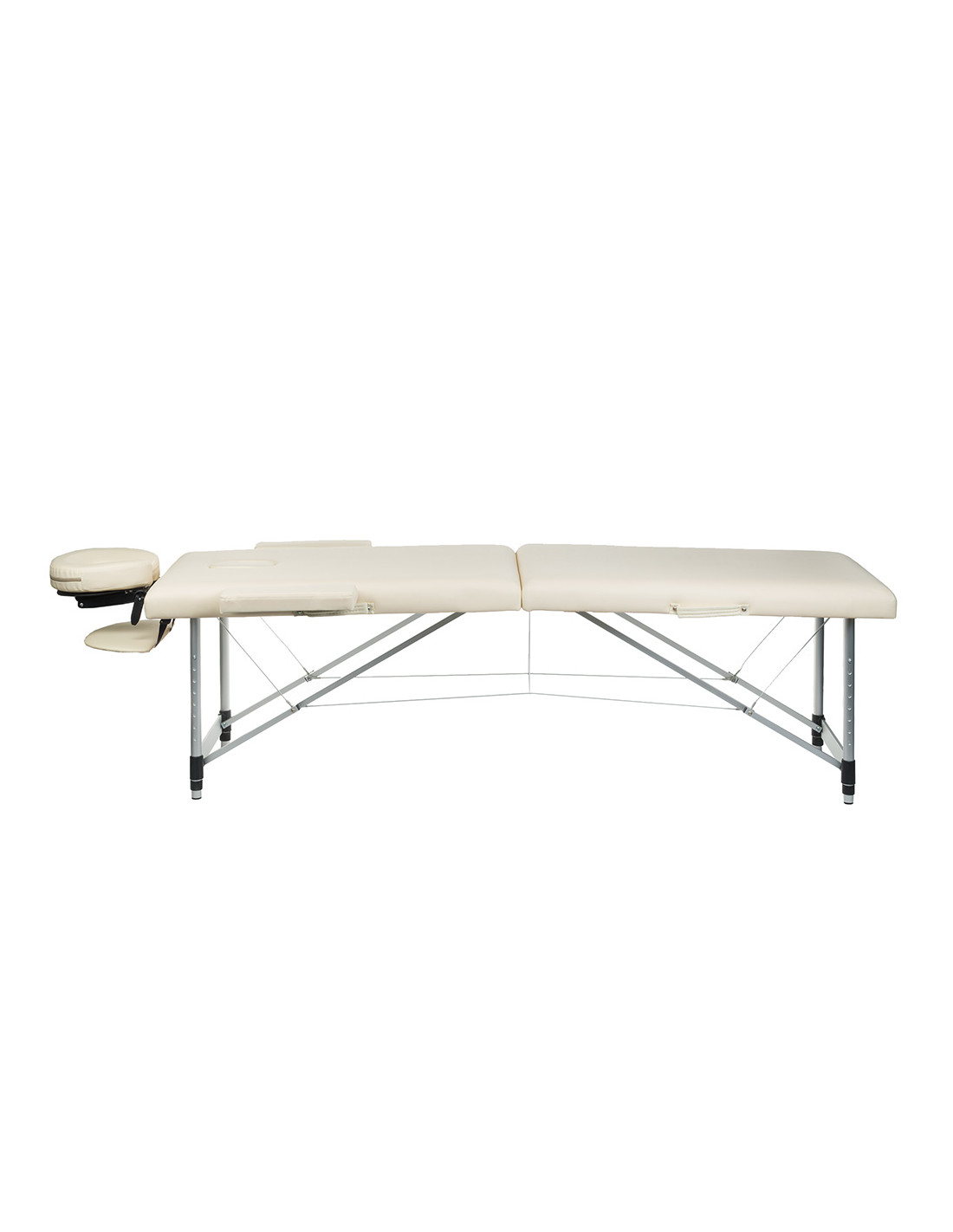 The table's construction is based on a light but durable aluminum frame. This material ensures not only adequate stability but also resistance to mechanical damage, guaranteeing a long lifespan for the table. Additionally, non-slip feet provide stability on any surface, which is crucial for patient safety.