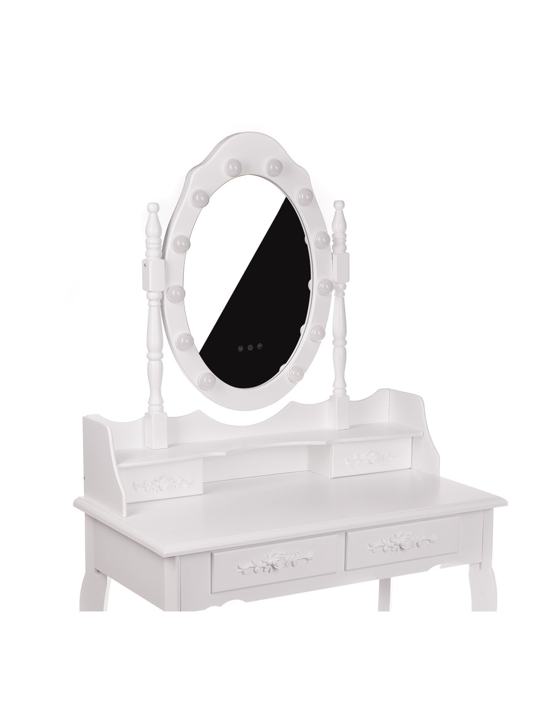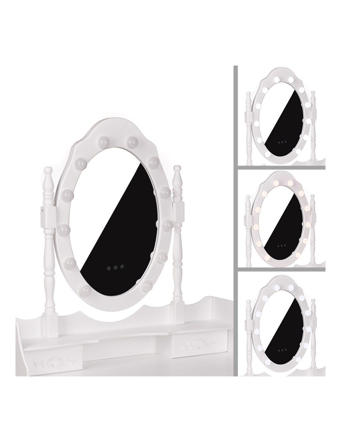 The NINA LED Dressing Table & Stool is a professional-grade solution designed for daily use in Irish beauty salons, providing an essential station for makeup artists and stylists. Engineered for durability and seamless workflow, this elegant white dressing table features an integrated LED mirror, ensuring optimal lighting for precise application and client satisfaction. Its robust construction is built to withstand the rigorous demands of high-traffic commercial environments, offering a reliable and long-lasting investment. The included ergonomic stool complements the table, providing comfort during extended sessions. With its easy-to-clean surfaces and thoughtful design, the NINA station promotes impeccable hygiene standards while enhancing the aesthetic appeal of any modern salon.