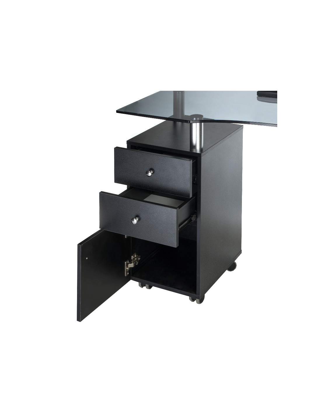- Elegant Black Glass Top: Provides a sleek, professional aesthetic and durable work surface.