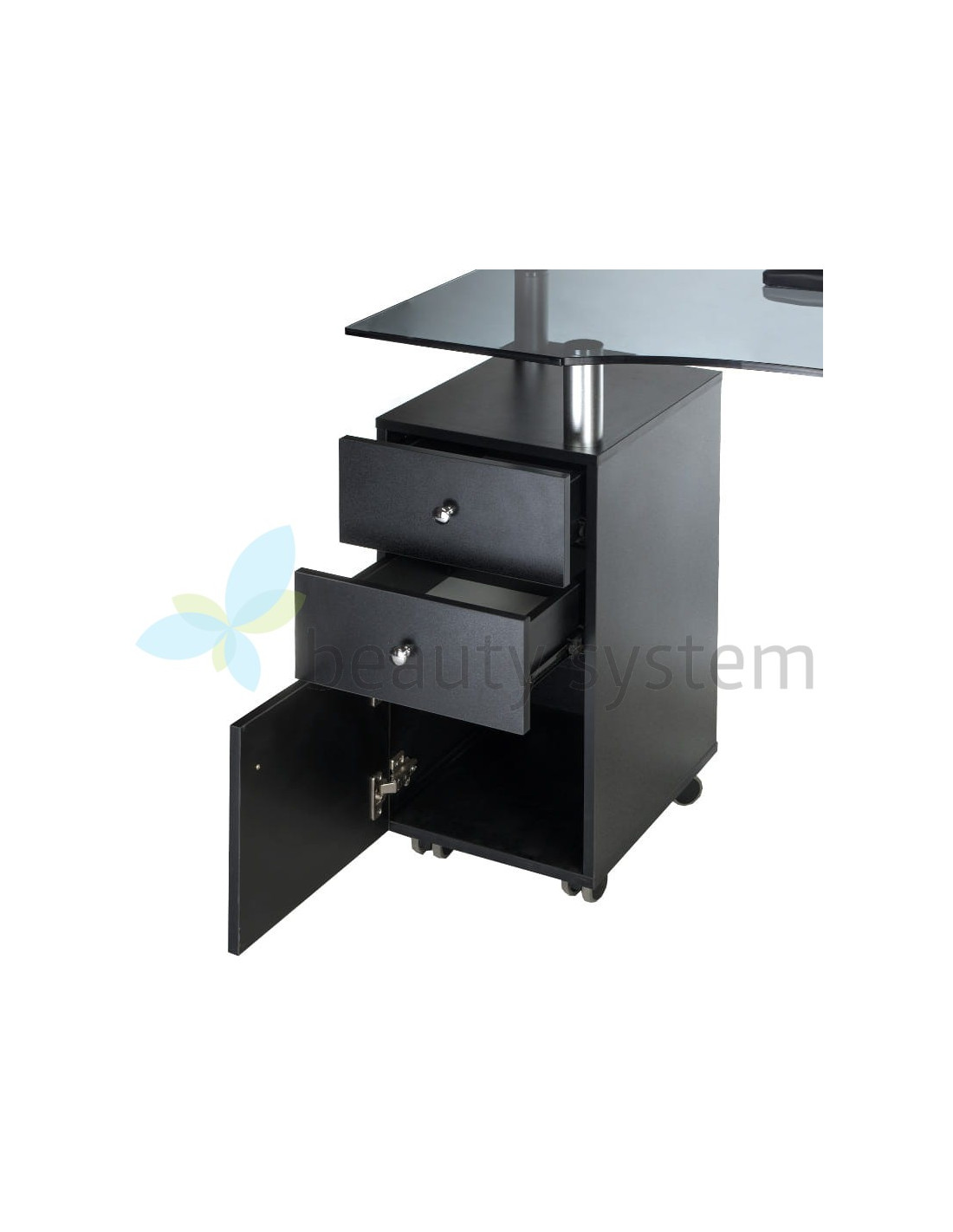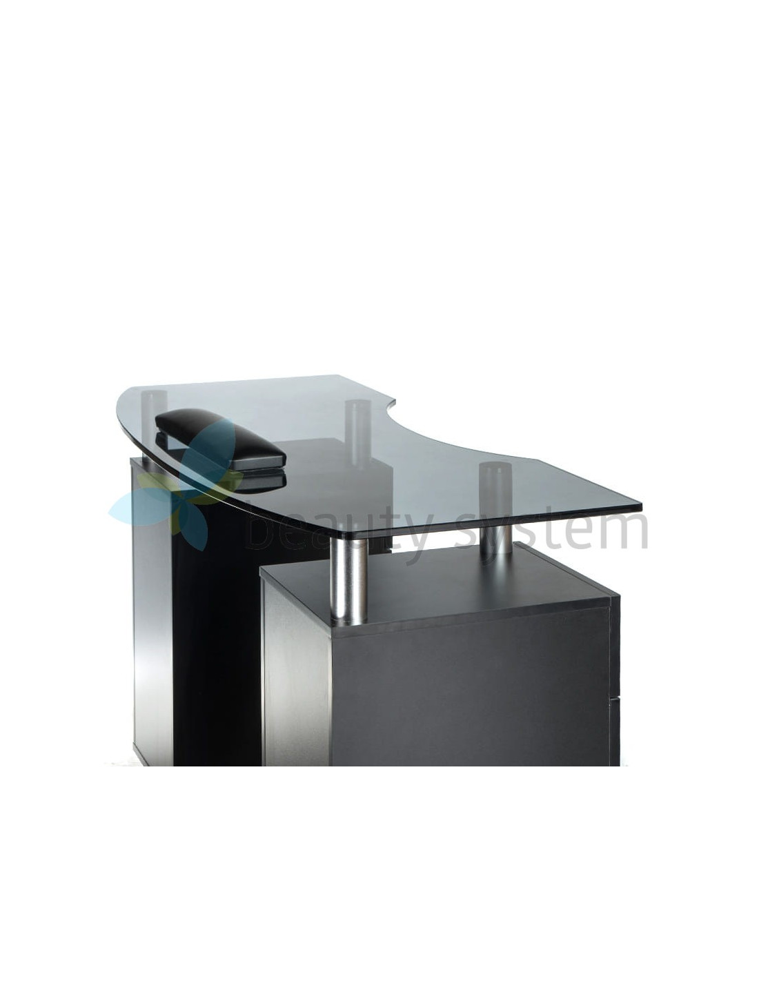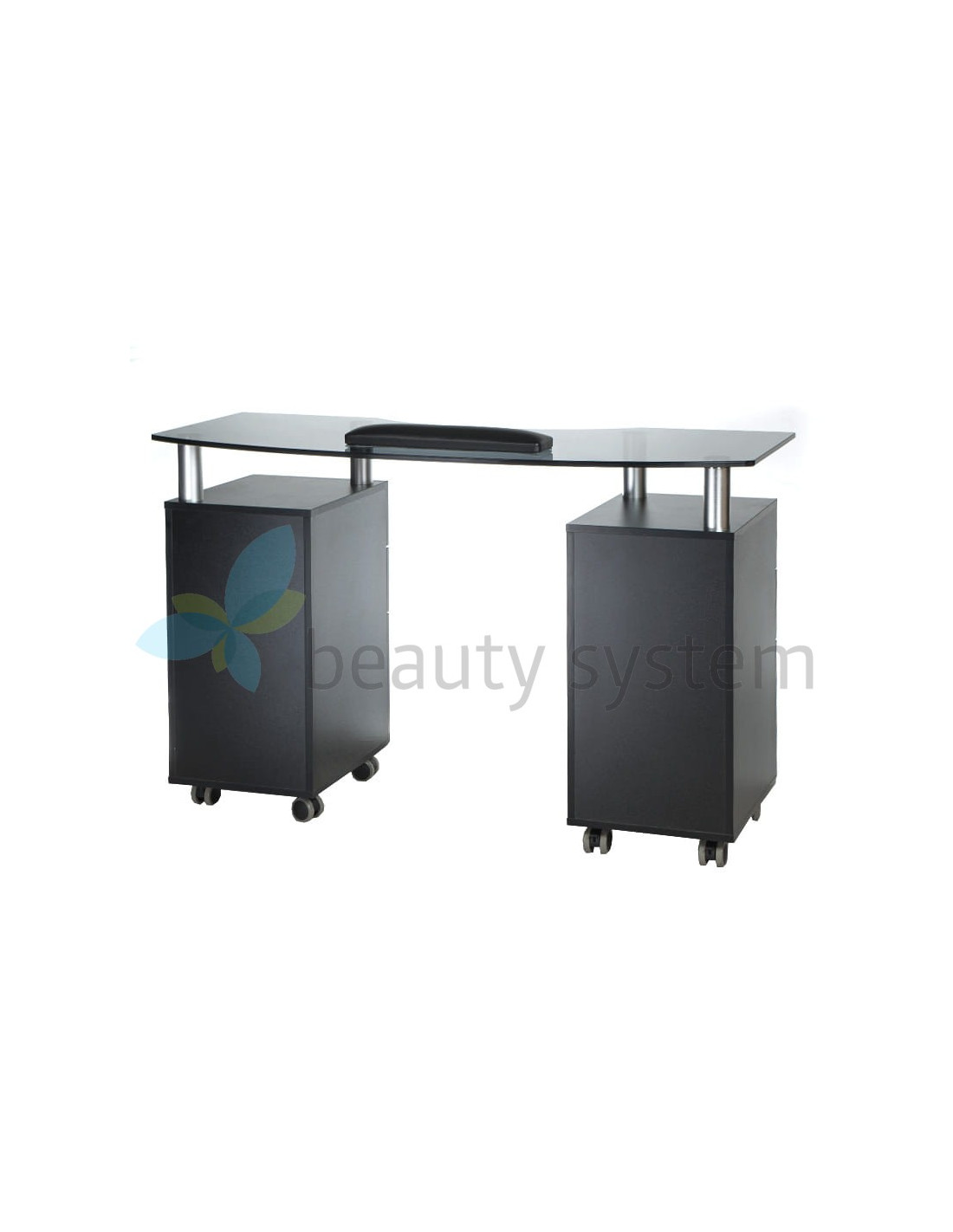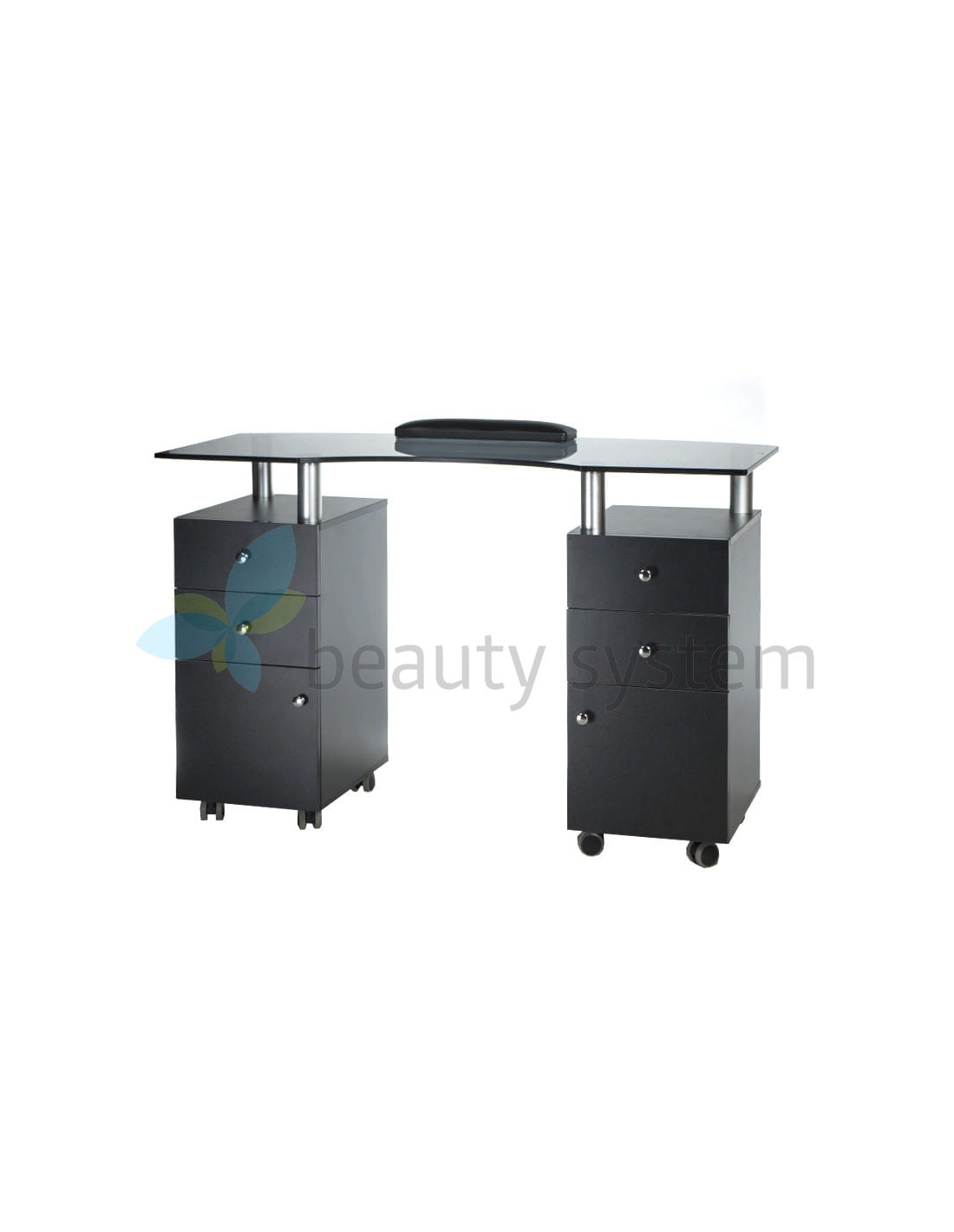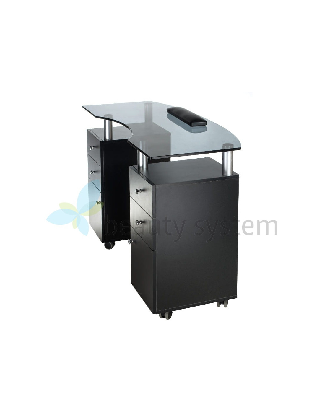 We offer a very elegant and functional table with an elegant black glass top. Furniture for beauty salons must be as useful as possible to ensure comfortable working conditions. The BD-3453 manicure table is mobile, has deep cabinets and practical drawers. The set is complemented by a comfortable treatment pillow. Solid construction and striking design are the hallmarks of Beauty System. Choose the BD-3453 manicure table with a one-year warranty!