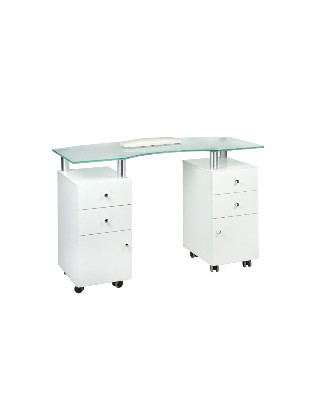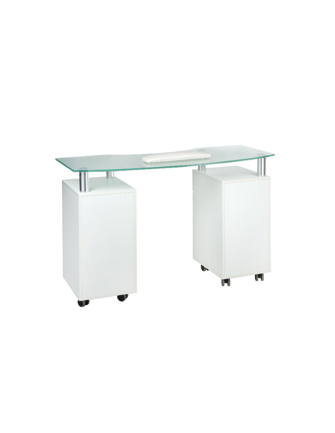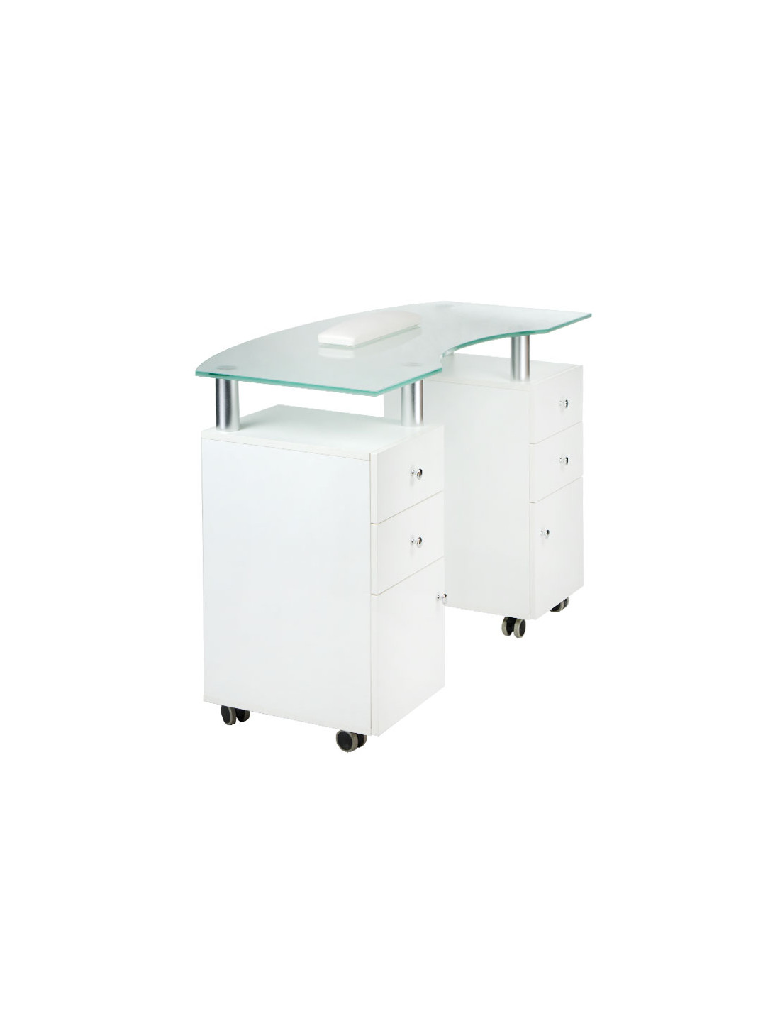 The Manicure Table BD-3453 White is engineered for commercial salon use, offering stable construction and a highly functional design. Crafted for high-traffic environments, its ergonomic features ensure comfort for both technician and client, while the smooth, easy-to-clean surfaces maintain impeccable hygiene standards effortlessly. This elegant and highly practical manicure table features a pristine white glass top, providing a sleek and durable workspace that is both visually appealing and incredibly easy to sanitise. Designed for busy Irish salons, the BD-3453 is fully mobile on smooth-gliding castors, allowing for flexible salon layouts and easy repositioning. It boasts ample storage with deep cabinets and practical drawers, keeping all your essential tools and products organised and within reach. A comfortable treatment cushion is included, enhancing client comfort during extended sessions. Its solid construction ensures longevity and reliability, making it a smart investment for any professional beauty centre.