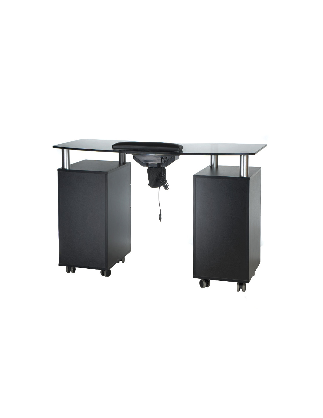 Designed for reception areas, consultation rooms and treatment spaces, the Manicure Table with Dust Collector delivers exceptional hygiene and client comfort, essential for high-traffic Irish salons. This elegant and highly functional manicure table features a sleek black glass top and an integrated dust collector, ensuring a clean and professional workspace. Engineered for busy beauty salons in Ireland, the BD-3453+P is highly mobile with smooth-gliding wheels, allowing for flexible salon layouts. It boasts deep cabinets and practical drawers for organised storage of tools and products. A comfortable treatment cushion is included, enhancing the client experience. Its solid construction and sophisticated design reflect a commitment to quality and durability, making it an ideal investment for any professional establishment.